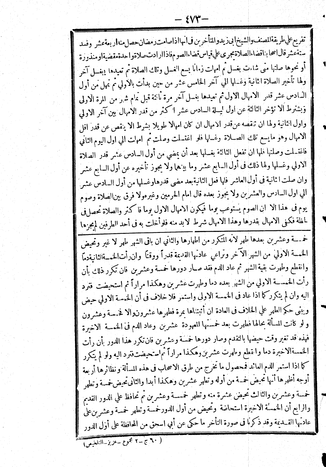 [خمسة وعشرين بعدها طهر لانه المتكرر من اطهارها والثاني ان باقى الشهر طهر لا غير وتحيض الخمسة الاولي من الشهر الآخر وتراعي عادتها القديمة قدرا ووقتا وان رأت الخمسة الثانية دما وانقطع وطهرت بقية الشهر ثم عاد الدم فقد صار دورها خمسة وعشرين فان تكرر ذلك بأن رأت الخمسة الاولي من الشهر بعده دما وطهرت عشرين وهكذا مرارا ثم استحيضت فترد