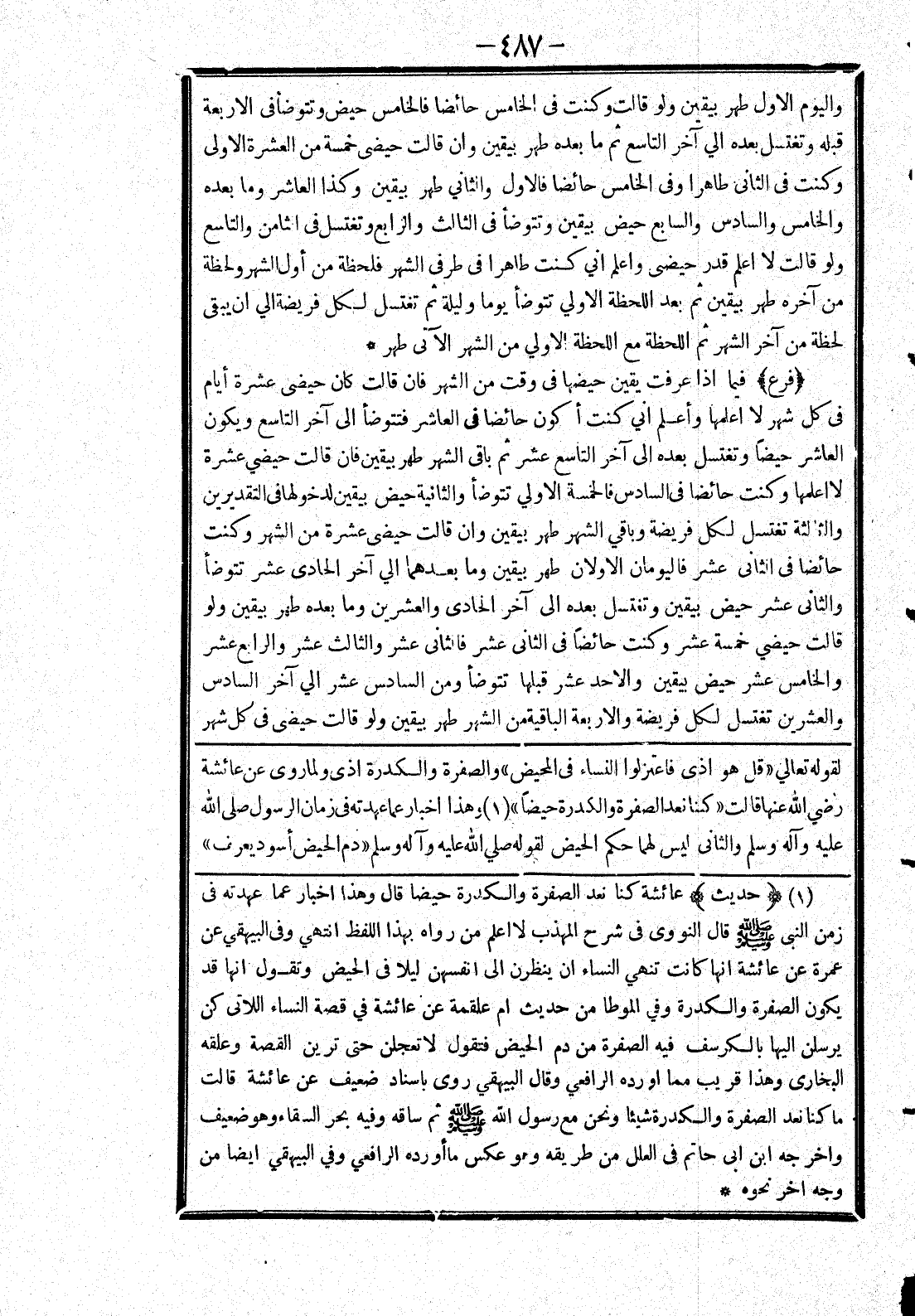 [لقوله تعالي (قل هو اذى فاعتزلوا النساء في المحيض) والصفرة والكدرة اذى ولما روى عن عائشة رضي الله عنها قالت (كنا نعد الصفرة والكدرة حيضا) وهذا اخبار عما عهدته في زمان الرسول صلى الله عليه وسلم والثانى ليس لهما حكم الحيض لقوله صلي الله عليه وسلم (دم الحيض أسود يعرف) ]