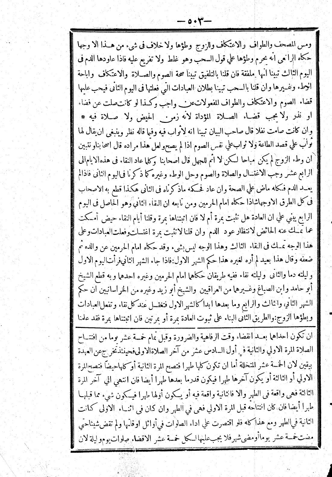 الصلاة المرة الاولي والثانية في أول السادس عشر من آخر الصلاة الاولى فحينئذ تخرج عن العهدة بيقين لان الخمسة عشر المتخللة أما ان تكون كلها طهرا فتصح المرة الثانية أو كلها حيضا فتصح المرة الاولي أو الثالثة أو يكون آخرها طهرا فيكون قدر ما بعدها طهرا أيضا فان انتهي الي آخر المرة الثالثة فهى واقعة في الطهر والا فالثانية واقعة فيه أو يكون أولها طهرا فيكون شيء مما قبلها طهرا أيضا فان كان افتتاحه قبل المرة الاولي فهى في الطهر وان كان في اثناء الاولى كانت الثانية في الطهر ومع هذا كله فلو اقتصرت علي اداء الصلوات في أوائل اوقاتها ولم تقض شيئا حتي مضت خمسة عشر يوما أو مضى شهر فلا يجب عليها لكل خمسة عشر الا قضاء صلوات يوم وليلة لان]
