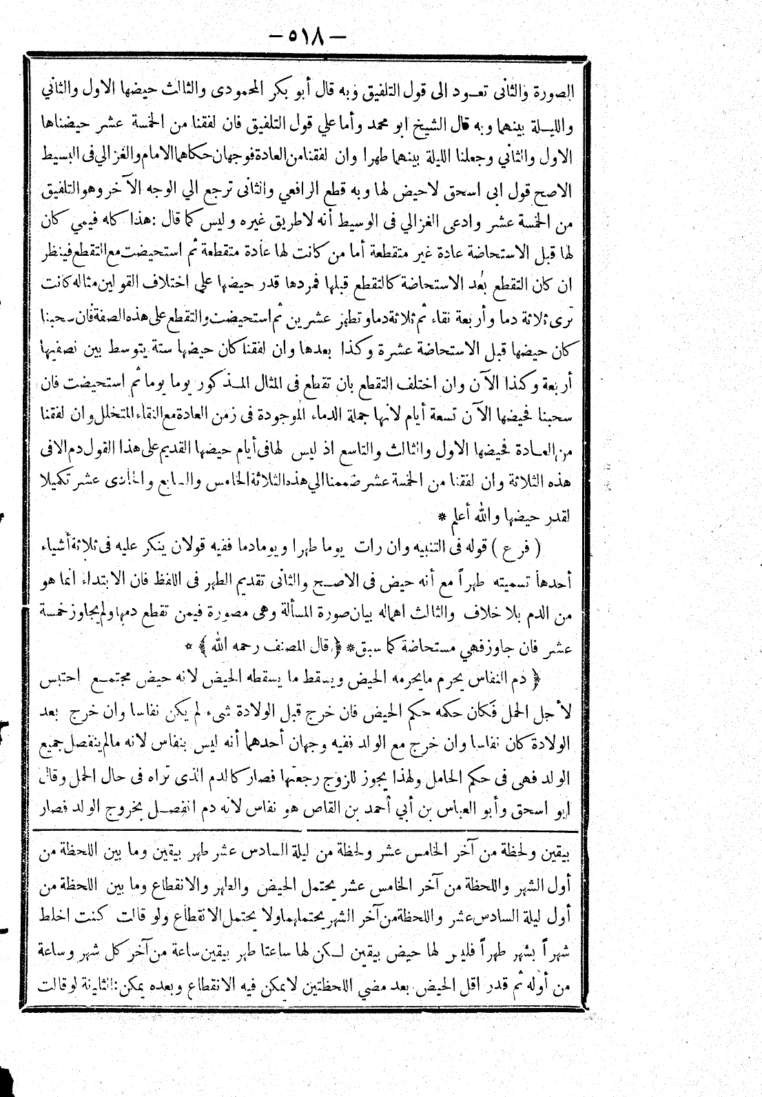 [بيقين ولحظة من آخر الخامس عشر ولحظة من ليلة السادس عشر طهر بيقين وما بين اللحظة من أول الشهر واللحظة من آخر الخامس عشر يحتمل الحيض والطهر والانقطاع وما بين اللحظة من أول ليلة السادس عشر واللحظة من آخر الشهر يحتملهما ولا يحتمل الانقطاع ولو قالت كنت اخلط شهرا بشهر طهرا فليس لها حيض بيقين لكن لها ساعتا طهر بيقين ساعة من آخر كل شهر وساعة من أوله ثم قدر اقل الحيض بعد مضي اللحظتين لا يمكن فيه الانقطاع وبعده يمكن: الثانية لو قالت]