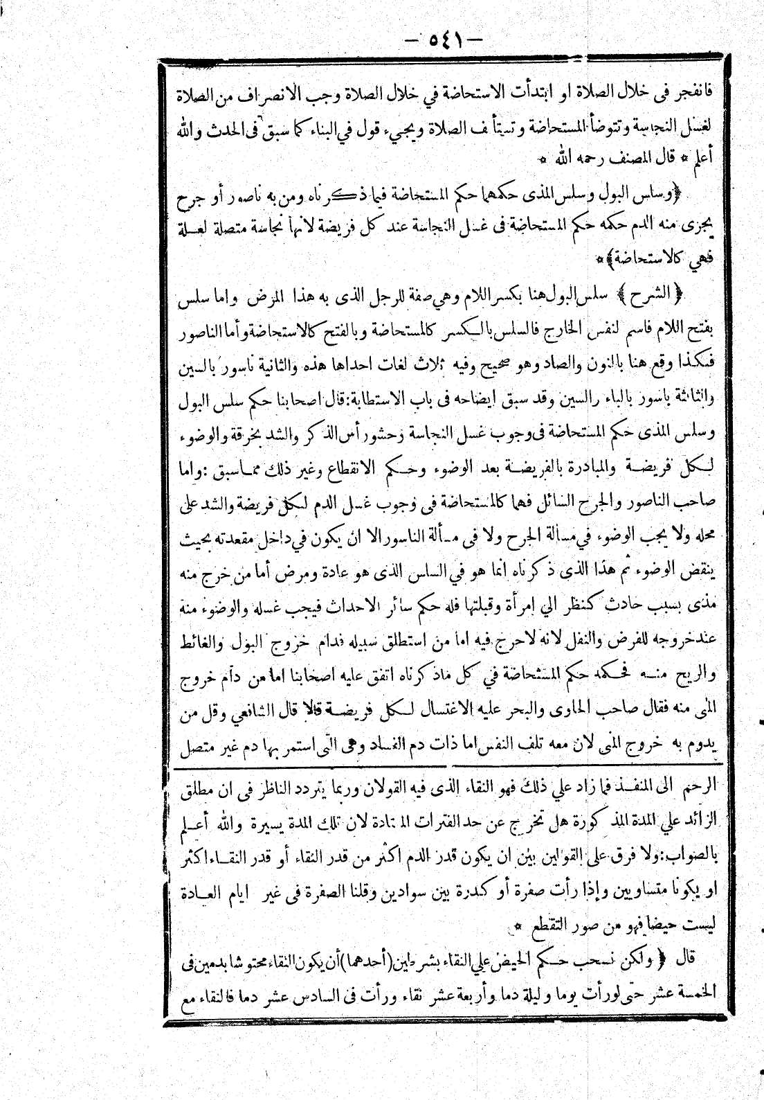 [الرحم إلى المنفذ فما زاد علي ذلك فهو النقاء الذى فيه القولان وربما يتردد الناظر في ان مطلق الزائد علي المدة المذكورة هل تخرج عن حد الفترات المعتادة لان تلك المدة يسيرة والله أعلم بالصواب: ولا فرق على القولين بين ان يكون قدر الدم اكثر من قدر النقاء أو قدر النقاء اكثر أو يكونا متساويين وإذا رأت صفرة أو كدرة بين سوادين وقلنا الصفرة في غير ايام العادة ليست حيضا فهو من صور التقطع * قال [ولكن نسحب حكم الحيض علي النقاء بشرطين (أحدهما) أن يكون النقاء محتوشا بدمين في
