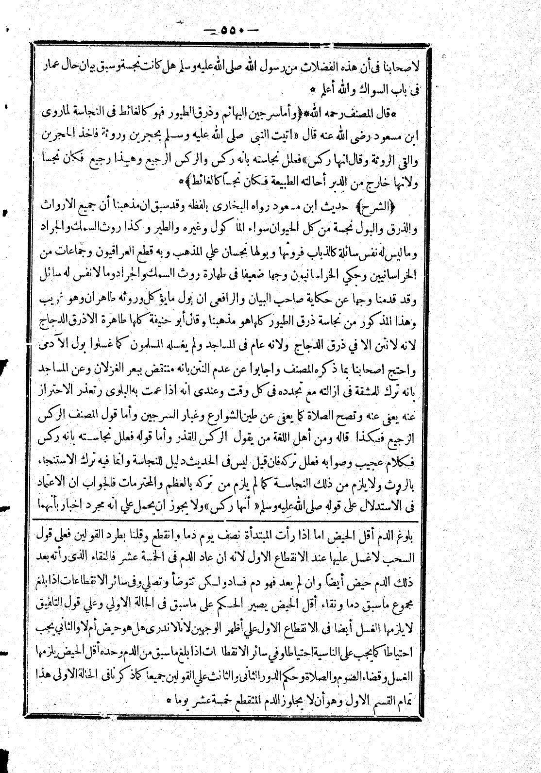 [بلوغ الدم أقل الحيض اما إذا رأت المبتدأة نصف يوم دما وانقطع وقلنا بطرد القولين فعلى قول السحب لا غسل عليها عند الانقطاع الاول لانه ان عاد الدم في الخمسة عشر فالنقاء الذى رأته بعد ذلك الدم حيض أيضا وان لم يعد فهو دم فساد ولكن تتوضأ وتصلي وفى سائر الانقطاعات إذا بلغ مجموع ما سبق دما ونقاء أقل الحيض يصير الحكم على ما سبق في الحالة الاولي وعلي قول التلفيق لا يلزمها الغسل أيضا في الانقطاع الاول علي أظهر الوجهين لانا لا ندرى هل هو حيض أم لا والثاني يجب احتياطا كما يجب على الناسية احتياطا وفي سائر الانقطاعات إذا بلغ ما سبق من الدم وحدة أقل الحيض يلزمها الغسل وقضاء الصوم والصلاة وحكم الدور الثاني والثالث علي القولين جميعا كما ذكرنا في الحالة الاولى هذا تمام القسم الاول وهو أن لا يجاوز الدم المتقطع خمسة عشر يوما *]