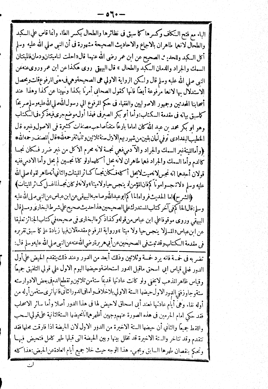[تضربه في خمسة فانه يرد خمسة وثلاثين وذلك أبعد من الدور وعند ذلك يتقدم الحيض علي أول الدور فعلي قياس ابى اسحق ما قبل الدور استحاضة وحيضها اليوم الاول علي قولي التلفيق جميعا وقياس ظاهر المذهب لا يخفى ولو كانت عادتها قديما ستة من ثلاثين وتقطع الدم في بعض الادوار سته ستة وجاوز ففي الدور الاول حيضها الستة الاولي بلا خلاف واما في الدور الثاني فانها ترى ستة من أوله من أوله نقاء وهى أيام عادتها فعند أبى اسحاق لا حيض لها في هذا الدور أصلا وأما سائر الاصحاب فقد حكي امام الحرمين في هذه الصورة عنهم وجهين أظهرهما انا نحيضها الستة الثانية على قولي السحب واللقط جميعا والثاني أن يحضها الستة الاخيرة من الدور الاول لان الحيضة إذا فارقت محلها فقد تتقدم وقد تتأخر والستة الاخيرة قد تخلل بينها وبين الحيضة التى قبلها طهر كامل فتحيض فيها ونحكم بنقصان طهرها السابق ويجئ هذا الوجه حيث خلا جميع أيام العادة عن الحيض: هذا كله]