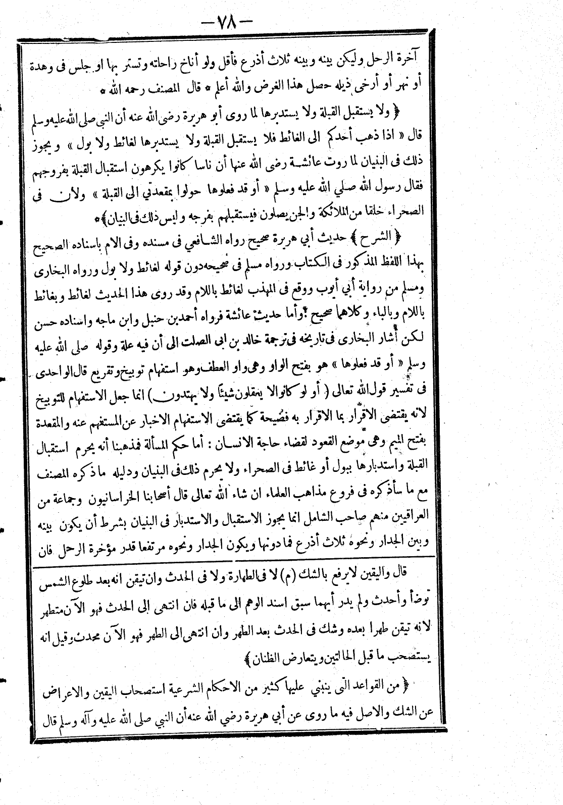 [قال واليقين لا يرفع بالشك (م) لا في الطهارة ولا في الحدث وان تيقن انه بعد طلوع الشمس توضأ وأحدث ولم يدر أيهما سبق اسند الوهم إلى ما قبله فان انتهى إلى الحدث فهو الآن متطهر لانه تيقن طهرا بعده وشك في الحدث بعد الطهر وان انتهى إلى الطهر فهو الآن محدث وقيل انه يستصحب ما قبل الحالتين ويتعارض الظنان] [من القواعد التى ينبني عليها كثير من الاحكام الشرعية استصحاب اليقين والاعراض عن الشك والاصل فيه ما روى عن أبي هريرة رضي الله عنه أن النبي صلى الله عليه وسلم قال