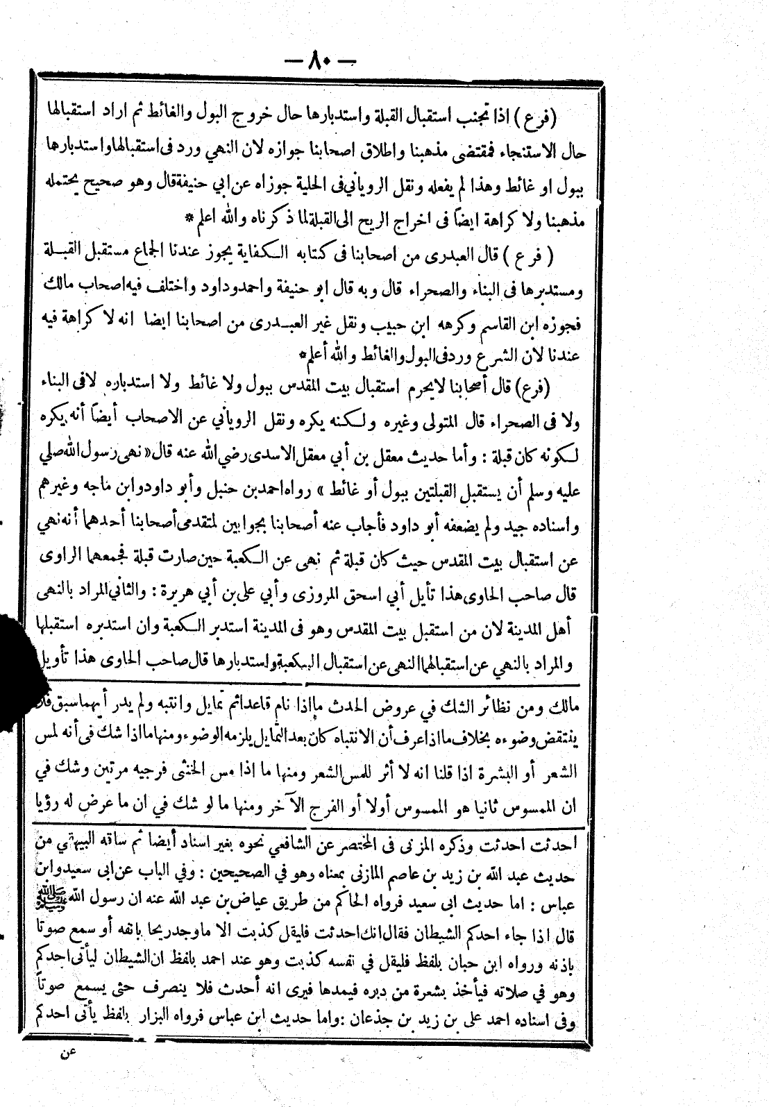 [مالك ومن نظائر الشك في عروض الحدث ما إذا نام قاعدا ثم تمايل وانتبه ولم يدر أيهما سبق فلا ينتقض وضوءه بخلاف ما إذا عرف أن الانتباه كان بعد التمايل يلزمه الوضوء ومنها ما إذا شك في أنه لمس الشعر أو البشرة إذا قلنا انه لا أثر للمس الشعر ومنها ما إذا مس الخنثى فرجيه مرتين وشك في ان الممسوس ثانيا هو الممسوس أولا أو الفرج الآخر ومنها ما لو شك في ان ما عرض له رؤيا