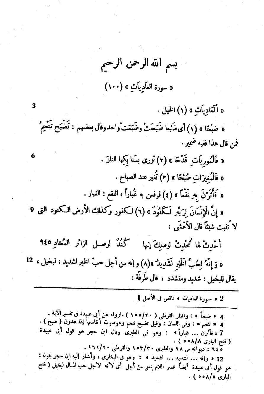 (1) . - 4 «ضبحا» : وانظر القرطبي (20/ 155) ما رواه عن أبى عبيدة فى تفسير الآية.