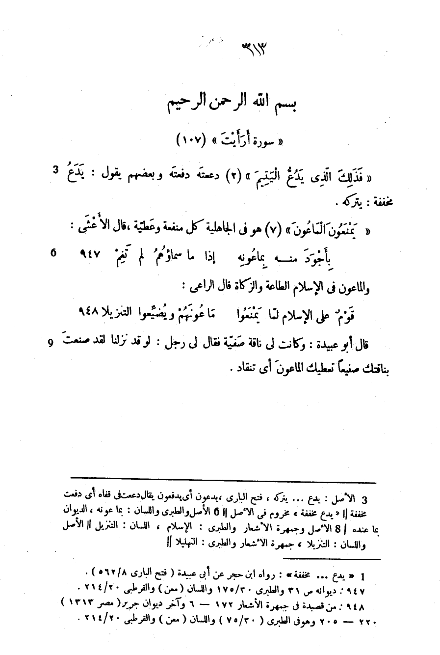 «يَمْنَعُونَ الْماعُونَ» (7) هو فى الجاهلية كل منفعة وعطيّة، قال الأعشى:
