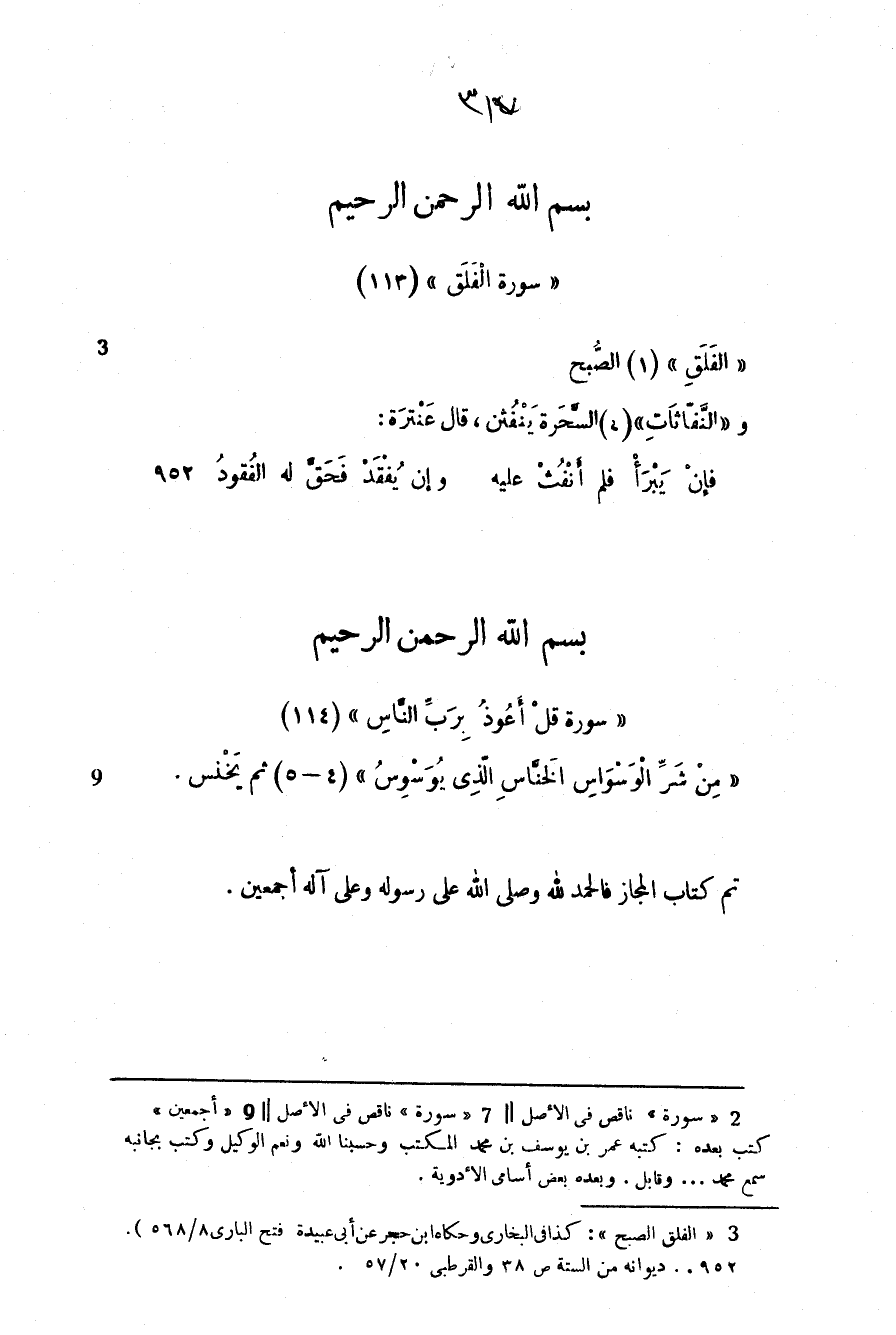 (1) . - 3 «الفلق الصبح» : كذا فى البخاري وحكاه ابن حجر عن أبى عبيدة فتح الباري 8/ 568) .