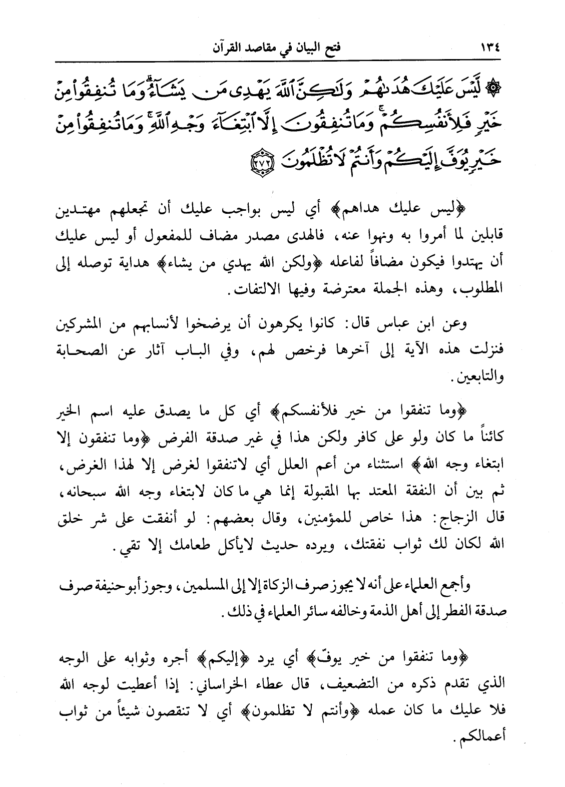 لَيْسَ عَلَيْكَ هُدَاهُمْ وَلَكِنَّ اللَّهَ يَهْدِي مَنْ يَشَاءُ وَمَا تُنْفِقُوا مِنْ خَيْرٍ فَلِأَنْفُسِكُمْ وَمَا تُنْفِقُونَ إِلَّا ابْتِغَاءَ وَجْهِ اللَّهِ وَمَا تُنْفِقُوا مِنْ خَيْرٍ يُوَفَّ إِلَيْكُمْ وَأَنْتُمْ لَا تُظْلَمُونَ (272)