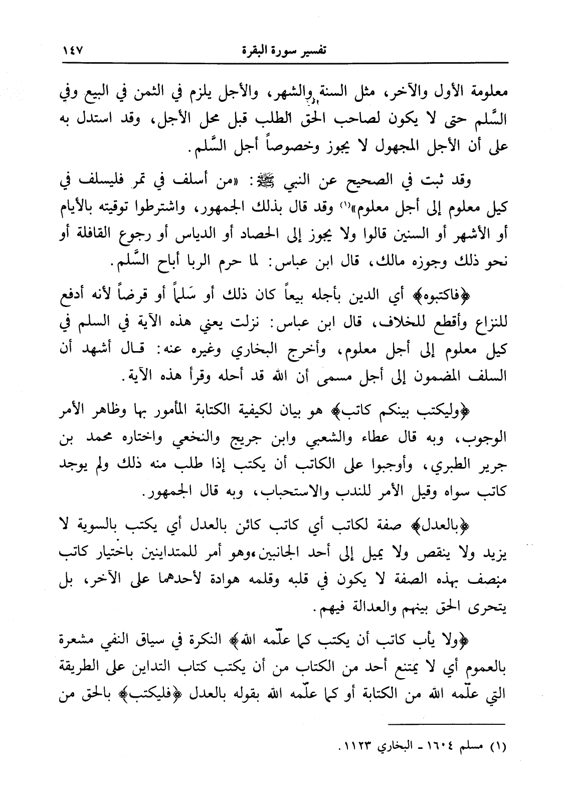 (فاكتبوه) أي الدين بأجله بيعاً كان ذلك أو سلماً أو قرضاً لأنه أدفع للنزاع وأقطع للخلاف، قال ابن عباس: نزلت يعني هذه الآية في السلم في كيل معلوم إلى أجل معلوم، وأخرج البخاري وغيره عنه: قال أشهد أن السلف المضمون إلى أجل مسمى أن الله قد أحله وقرأ هذه الآية.
