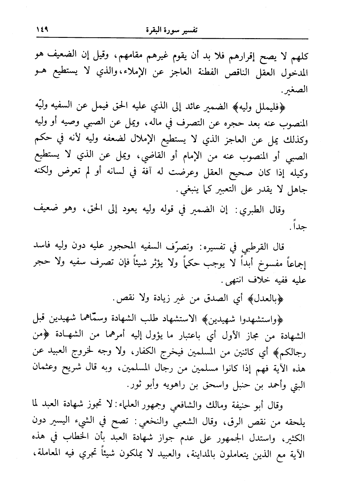 قال القرطبي في تفسيره: وتصرّف السفيه المحجور عليه دون وليه فاسد إجماعاً مفسوخ أبداً لا يوجب حكماً ولا يؤثر شيئاً فإن تصرف سفيه ولا حجر عليه ففيه خلاف انتهى.