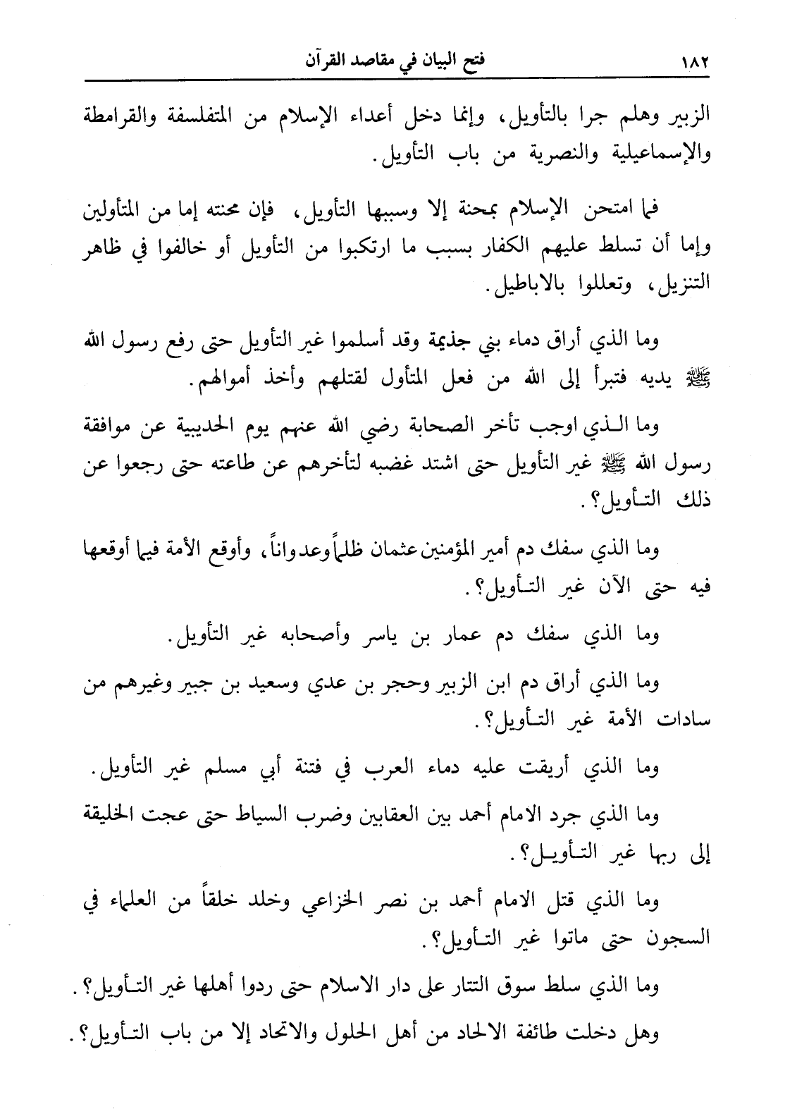 الزبير وهلم جرا بالتأويل، وإنما دخل أعداء الإسلام من المتفلسفة والقرامطة والإسماعيلية والنصرية من باب التأويل.