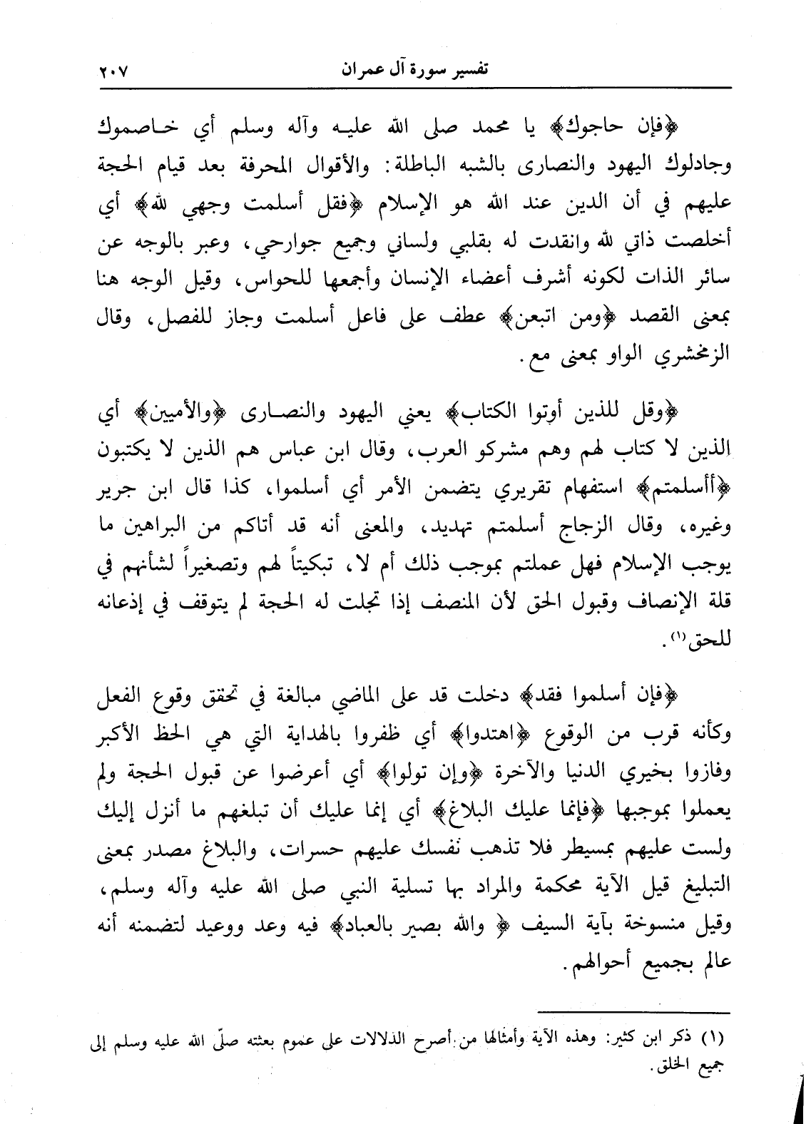 (وقل للذين أوتوا الكتاب) يعني اليهود والنصارى (والأميين) أي الذين لا كتاب لهم وهم مشركو العرب، وقال ابن عباس هم الذين لا يكتبون (أأسلمتم) استفهام تقريري يتضمن الأمر أي أسلموا، كذا قال ابن جرير وغيره، وقال الزجاج أسلمتم تهديد، والمعنى أنه قد أتاكم من البراهين ما يوجب الإسلام فهل عملتم بموجب ذلك أم لا، تبكيتاً لهم وتصغيراً لشأنهم في قلة الإنصاف وقبول الحق لأن المنصف إذا تجلت له الحجة لم يتوقف في إذعانه للحق (¬1).