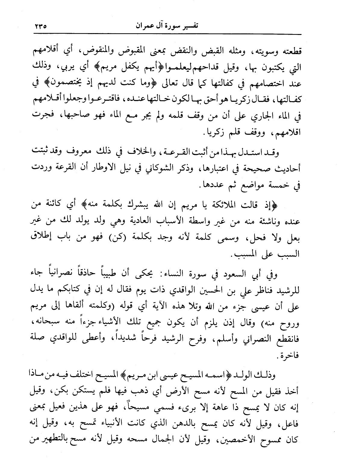 وفي أبي السعود في سورة النساء: يحكى أن طبيباً حاذقاً نصرانياً جاء للرشيد فناظر علي بن الحسين الواقدي ذات يوم فقال له إن في كتابكم ما يدل على أن عيسى جزء من الله وتلا هذه الآية أي قوله (وكلمته ألقاها إلى مريم وروح منه) وقال إذن يلزم أن يكون جميع تلك الأشياء جزءاً منه سبحانه، فانقطع النصراني وأسلم، وفرح الرشيد فرحاً شديداً، وأعطى للواقدي صلة فاخرة.