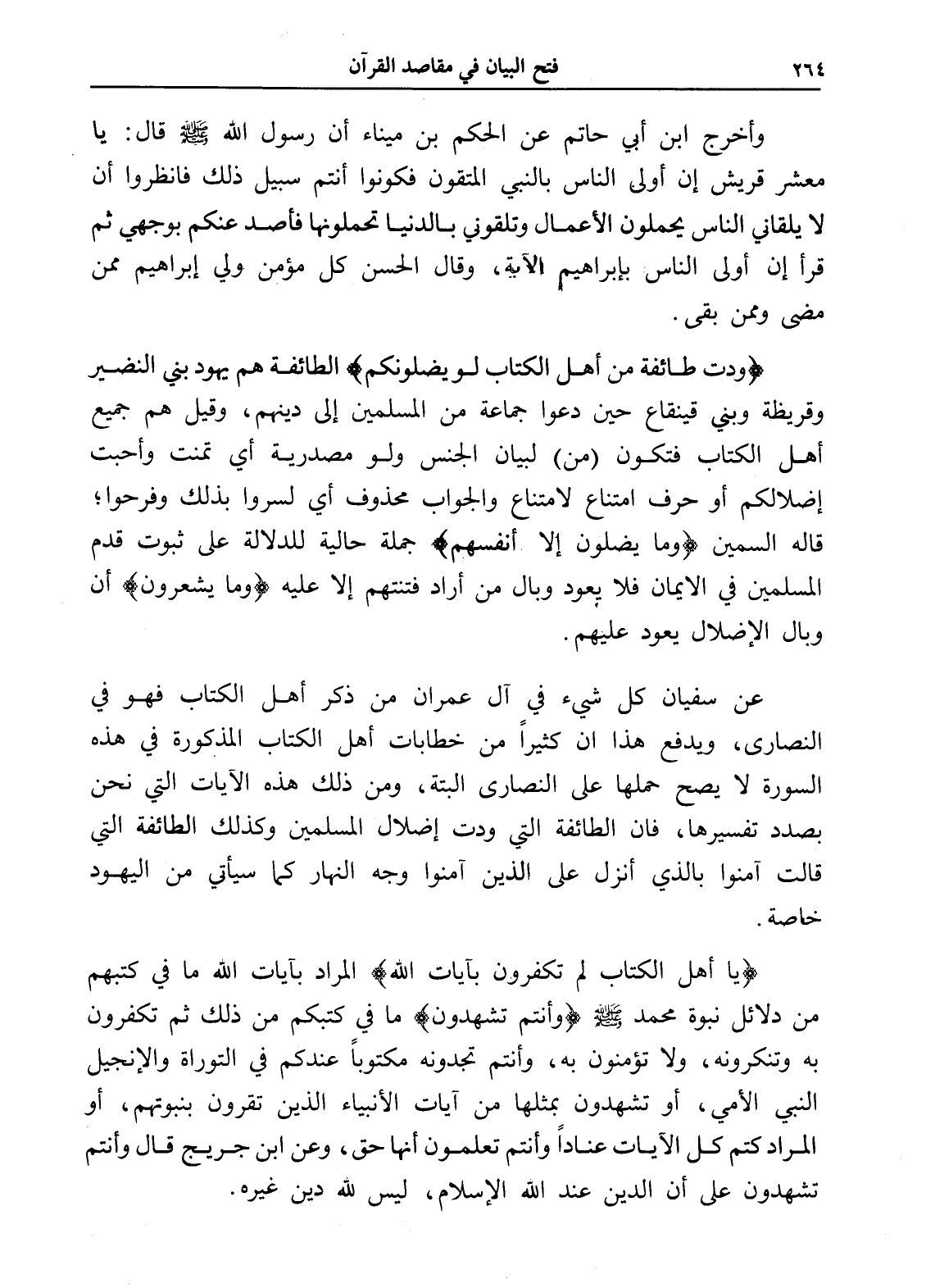 عن سفيان كل شيء في آل عمران من ذكر أهل الكتاب فهو في النصارى، ويدفع هذا أن كثيراً من خطابات أهل الكتاب المذكورة في هذه السورة لا يصح حملها على النصارى البتة، ومن ذلك هذه الآيات التي نحن بصدد تفسيرها، فإن الطائفة التي ودت إضلال المسلمين وكذلك الطائفة التي قالت آمنوا بالذي أنزل على الذين آمنوا وجه النهار كما سيأتي من اليهود خاصة.