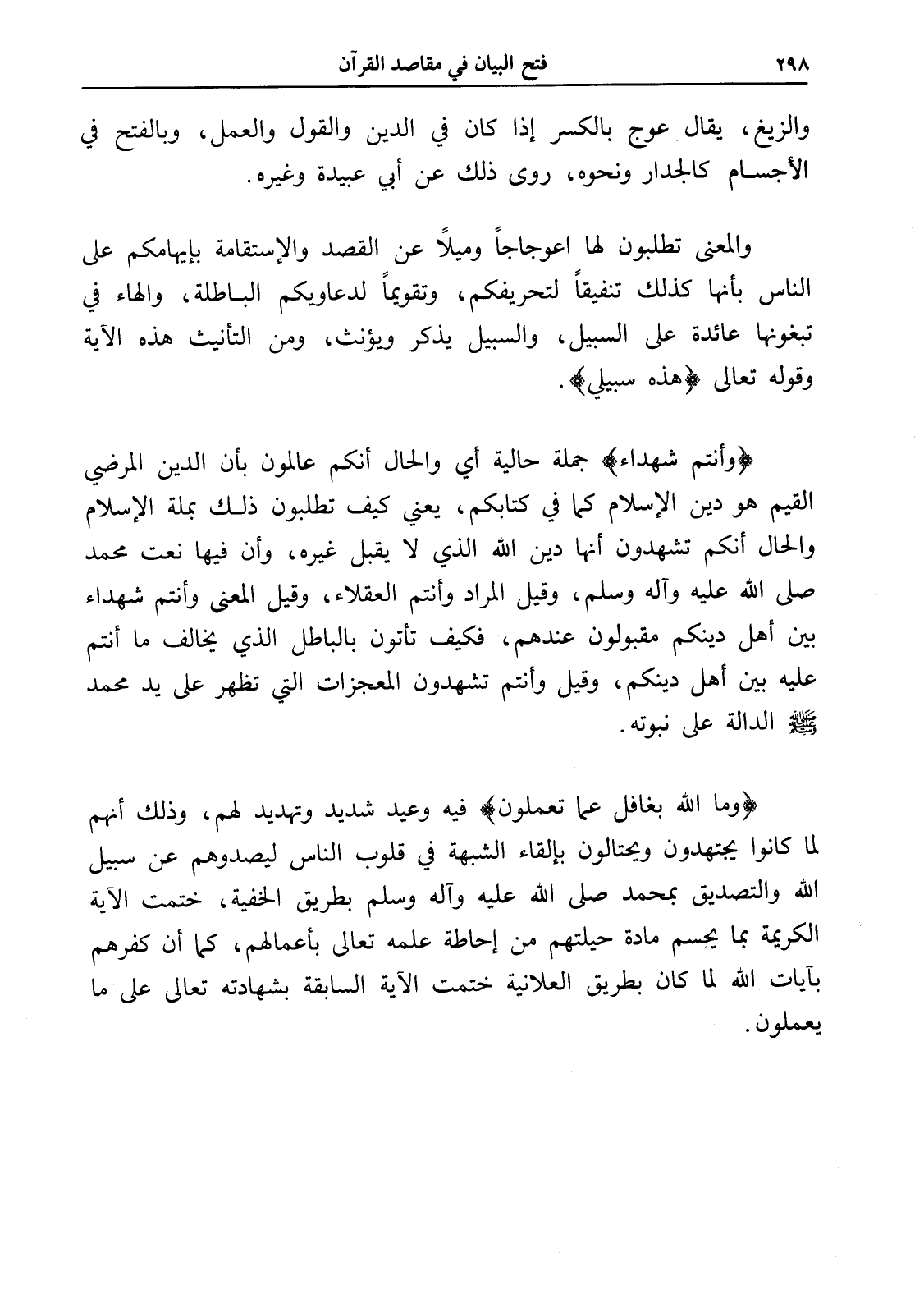 والمعنى تطلبون لها اعوجاجاً وميلاً عن القصد والإستقامة بإيهامكم على الناس بأنها كذلك تنفيقاً لتحريفكم، وتقويماً لدعاويكم الباطلة، والهاء في تبغونها عائدة على السبيل، والسبيل يذكر ويؤنث، ومن التأنيث هذه الآية وقوله تعالى (هذه سبيلي).