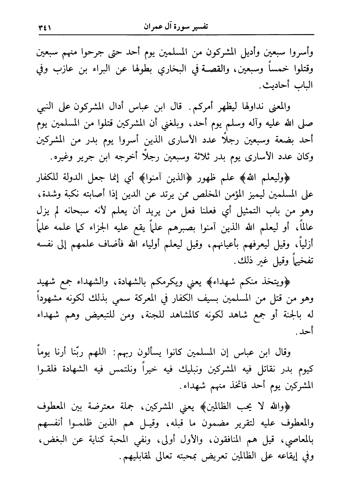 وقال ابن عباس إن المسلمين كانوا يسألون ربهم: اللهم ربّنا أرنا يوماً كيوم بدر نقاتل فيه المشركين ونبليك فيه خيراً ونلتمس فيه الشهادة فلقوا المشركين يوم أحد فاتخذ منهم شهداء.