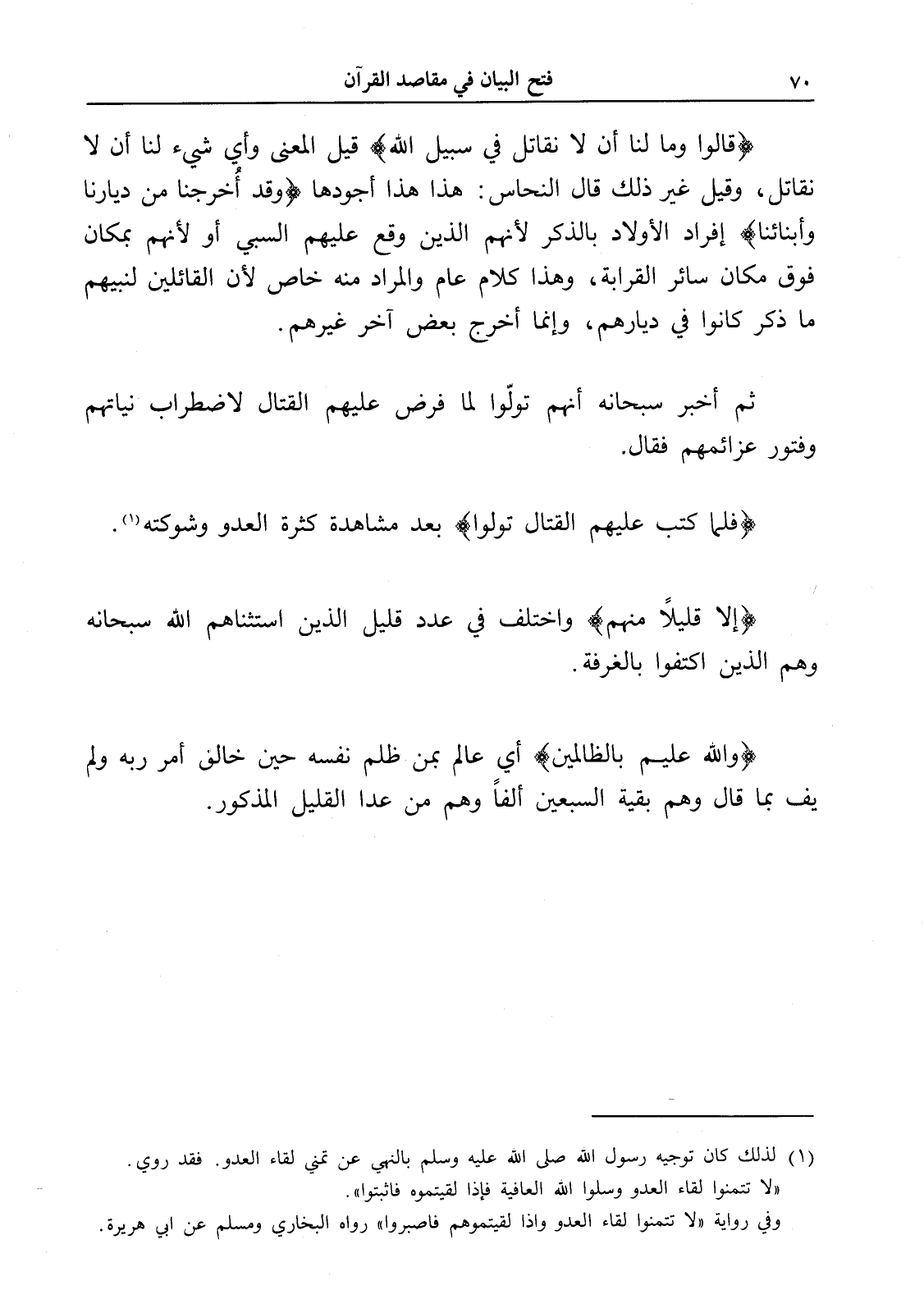 (والله عليم بالظالمين) أي عالم بمن ظلم نفسه حين خالف أمر ربه ولم يف بما قال وهم بقية السبعين ألفاً وهم من عدا القليل المذكور.