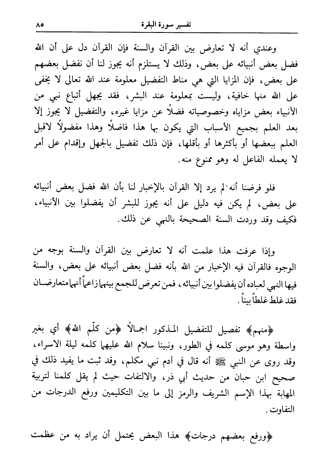 فلو فرضنا أنه لم يرد إلا القرآن بالإخبار لنا بأن الله فضل بعض أنبيائه على بعض، لم يكن فيه دليل على أنه يجوز للبشر أن يفضلوا بين الأنبياء، فكيف وقد وردت السنة الصحيحة بالنهي عن ذلك.