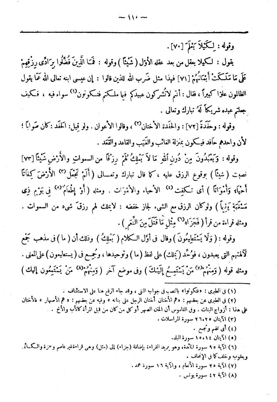 (1) فى الطبري: «فتكونوا» بالنصب فى جواب النفي، وقد جاء الرفع هنا على الاستئناف.