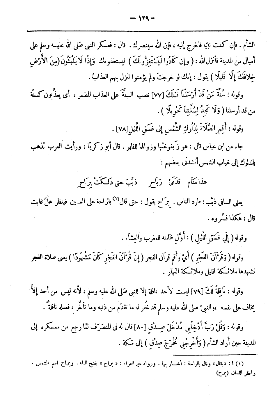 وقوله: وَقُلْ رَبِّ أَدْخِلْنِي مُدْخَلَ صِدْقٍ [80] قَالَ لَهُ فِي المنصرف لِمَا رجع من معسكره إلى المدينة حين أراد الشام (وَأَخْرِجْنِي مُخْرَجَ صِدْقٍ) إلى مكة.