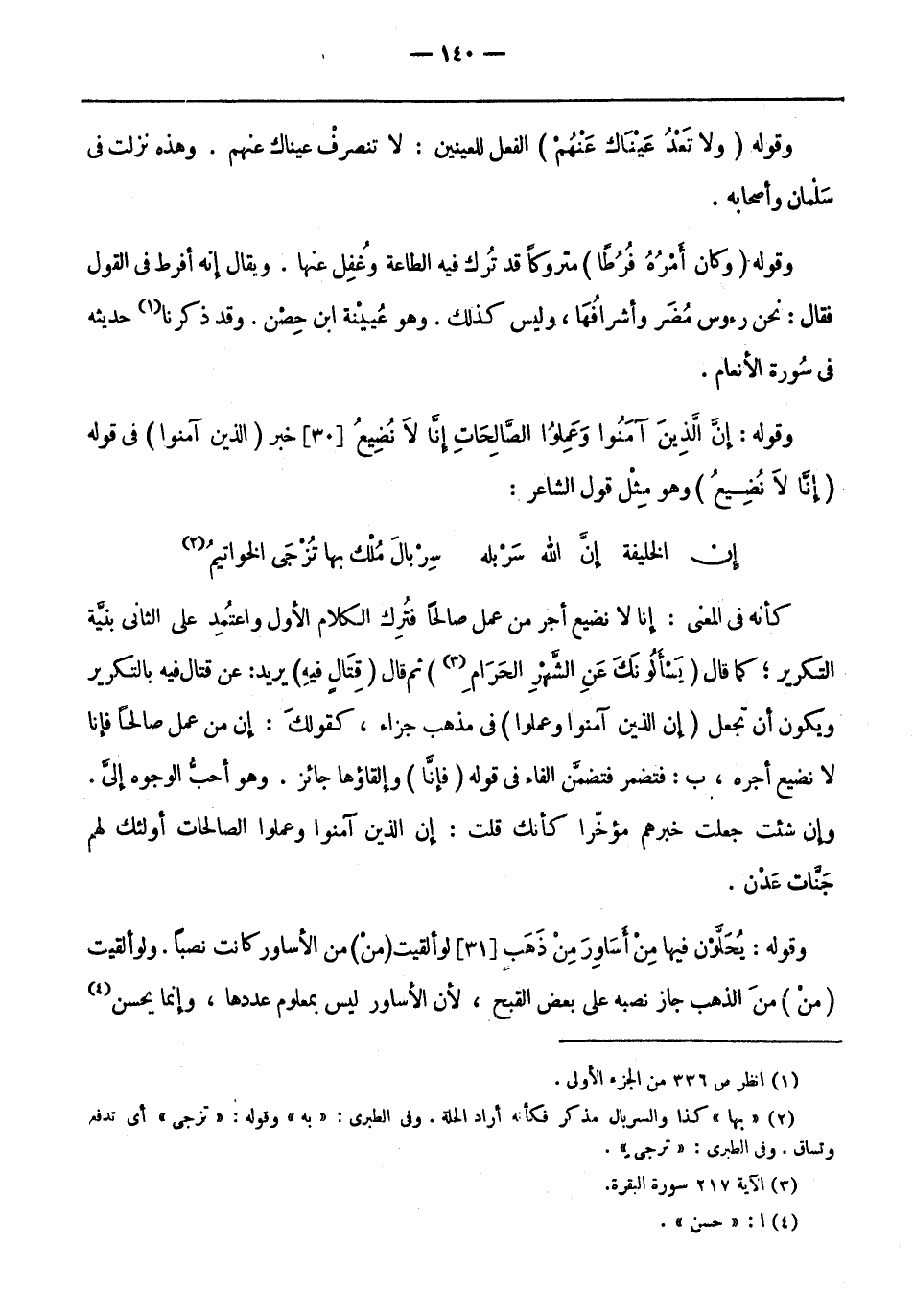 وقوله: إِنَّ الَّذِينَ آمَنُوا وَعَمِلُوا الصَّالِحاتِ إِنَّا لا نُضِيعُ [30] خبر (الَّذِينَ آمَنُوا) فِي قوله (إِنَّا لا نُضِيعُ) وهو مثل قول الشاعر: