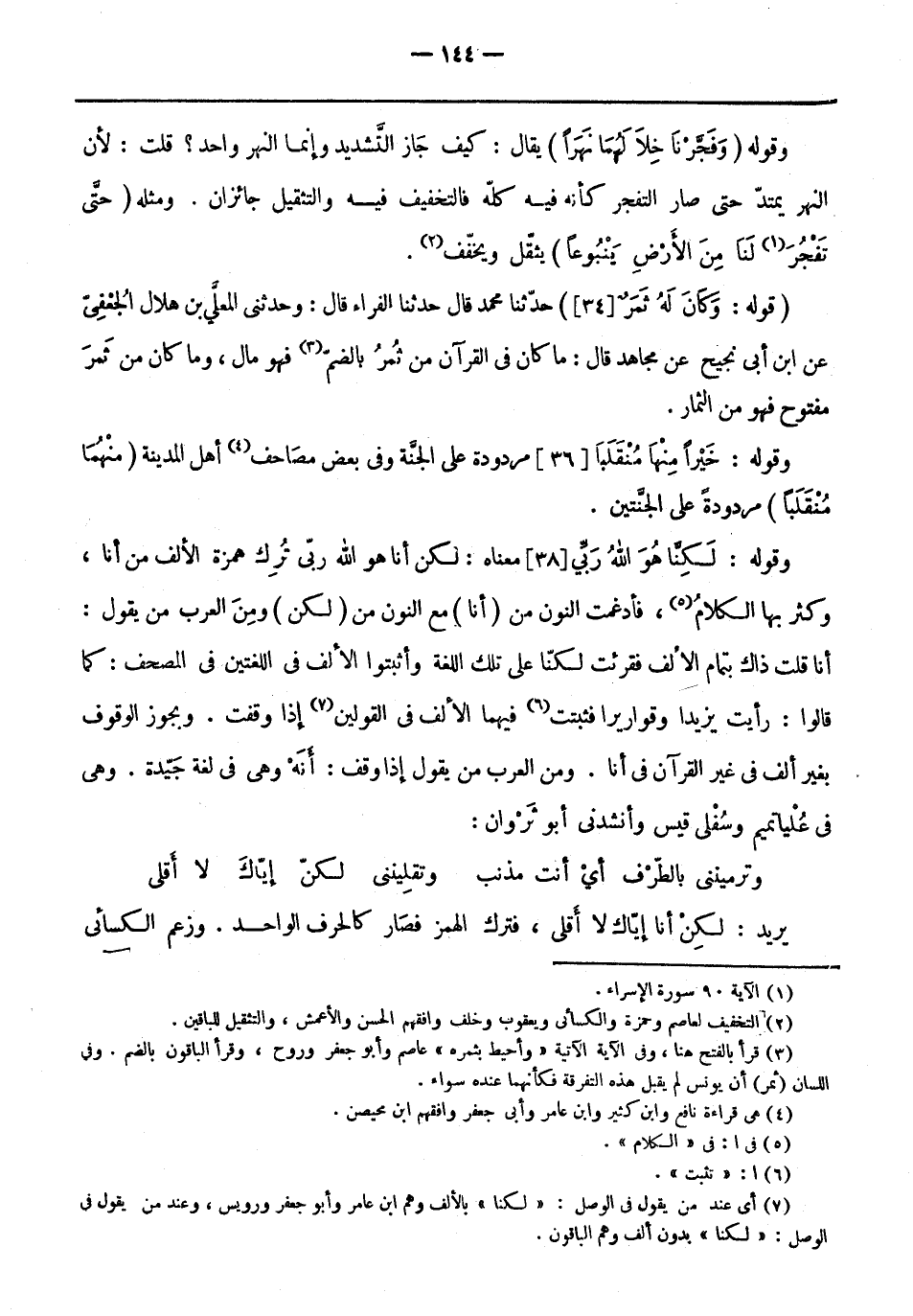 أنا قلت ذاك بِتمام الألف فقرئت لكنّا عَلَى تِلْكَ اللغة وأثبتوا الألف فِي اللغتين فِي المصحف: كما قالوا: رأيت يزيدا وقواريرا فثبتت «6» فيهما الألف فِي القولين «7» إذا وقفت. ويَجوز الوقوف بغير ألف فِي غير القرآن فِي أنا. ومن العرب من يقول إذا وقف: أَنَّهُ وهي فِي لغة جيدة. وهي فِي علياتميم وسُفْلَى قيس وأنشدني أَبُو ثروان: