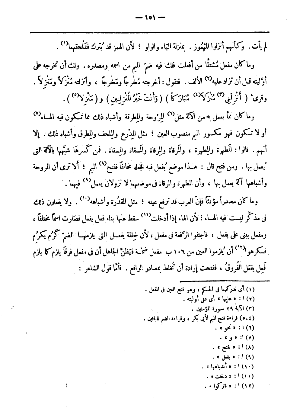 وما كَانَ مفعل مُشتقًا من أفعلت فلك فِيهِ ضم الميم من اسمه ومصدره. ولك أن تُخرجه عَلَى أوَّليته قبل أن تزاد عَلَيْهِ «2» الألف. فتقول: أخرجته مُخرجًا ومَخْرَجًا، وأنزلته مُنْزَلًا ومَنْزِلًا.