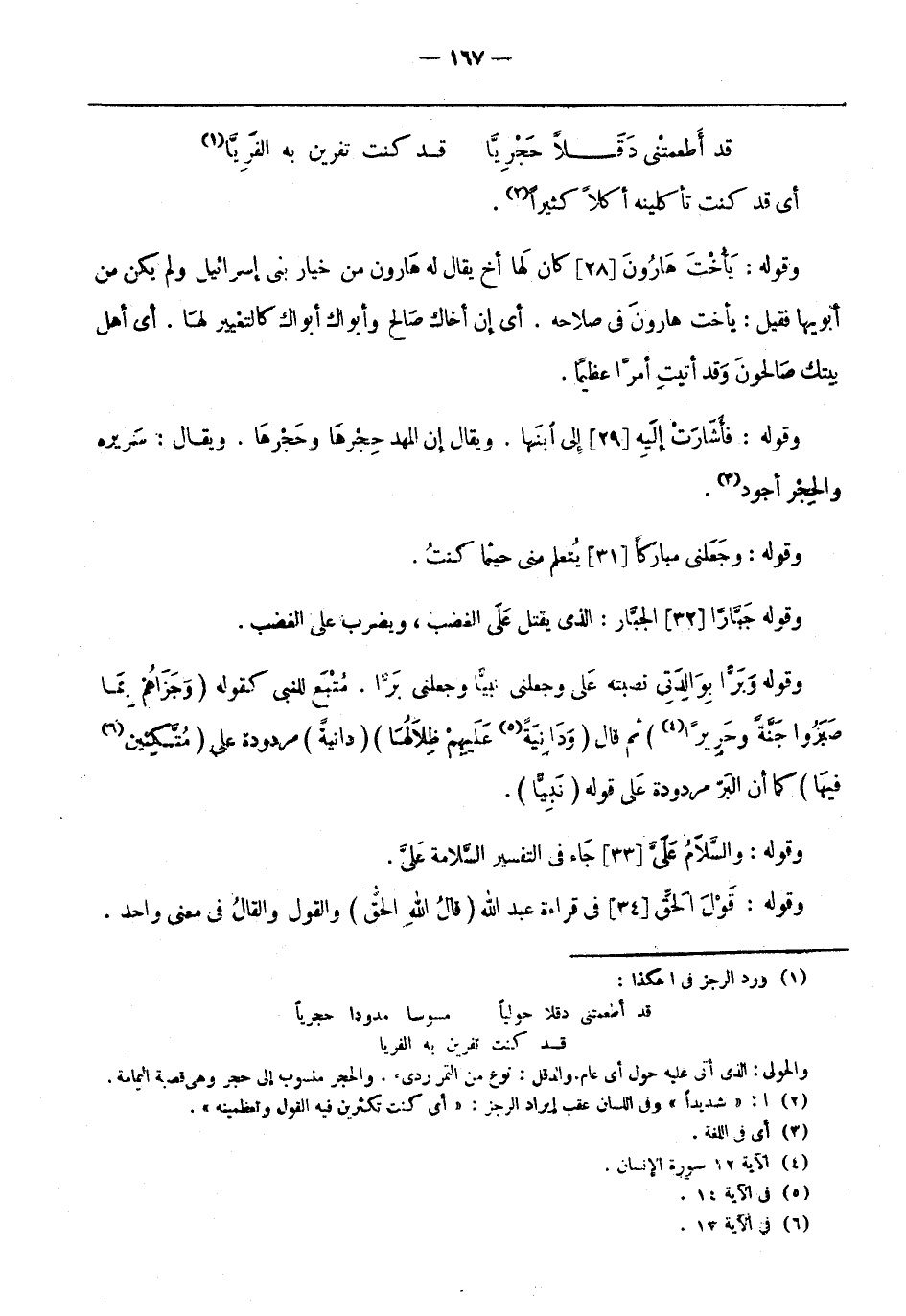 وقوله وَبَرًّا بِوالِدَتِي نصبته عَلَى وجعلني نبيًّا وجعلني بَرًّا. مُتبع للنبي كقوله (وَجَزاهُمْ بِما صَبَرُوا جَنَّةً وَحَرِيراً «4» ) ثم قال (وَدانِيَةً «5» عَلَيْهِمْ ظِلالُها) (دانية) مردودة على (مُتَّكِئِينَ «6» فِيها) كما أن البر مردودة عَلَى قوله (نَبِيًّا) .