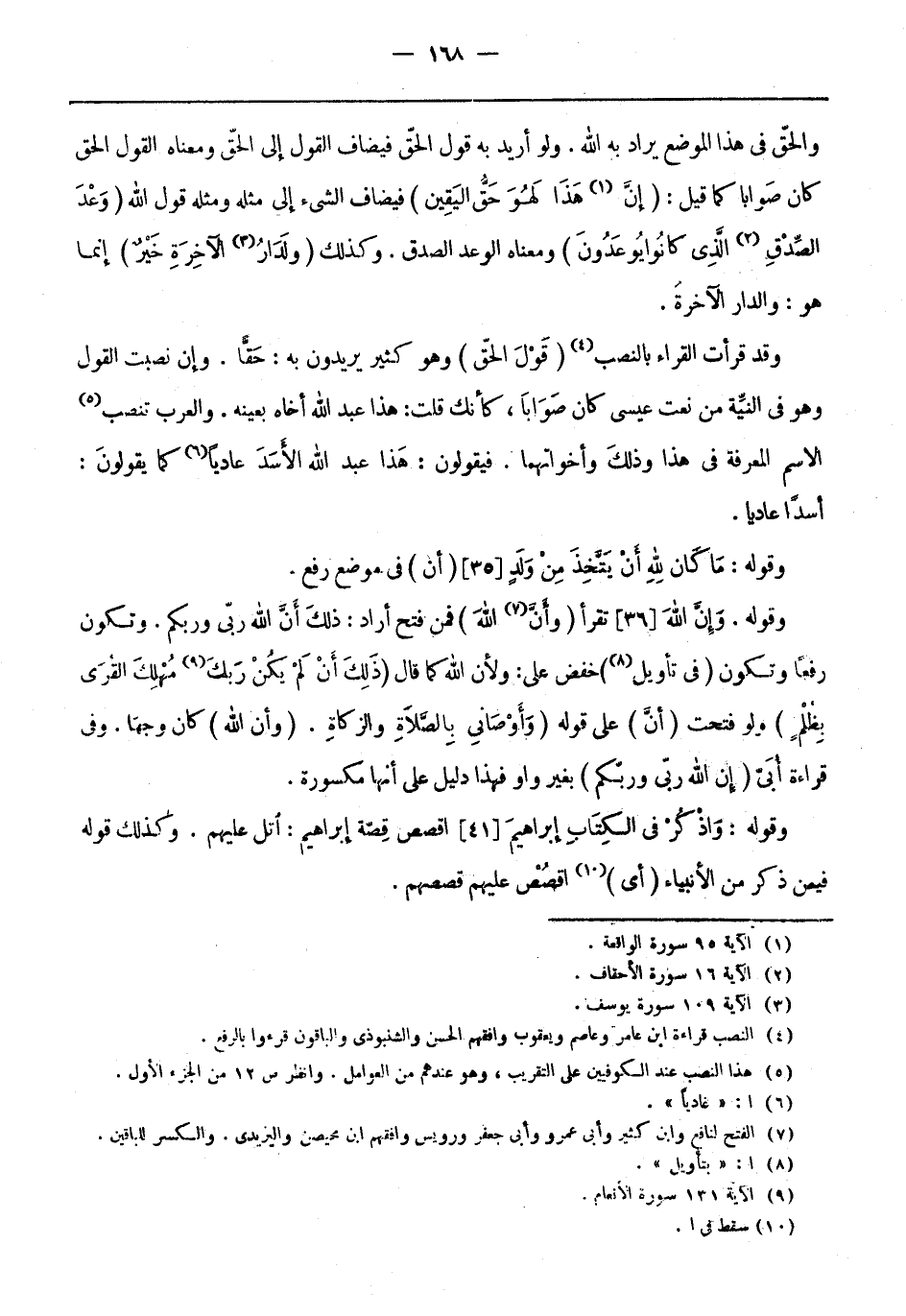 (4) النصب قراءة ابن عامر وعاصم ويعقوب وافقهم الحسن والشنبوذى والباقون قرءوا بالرفع.