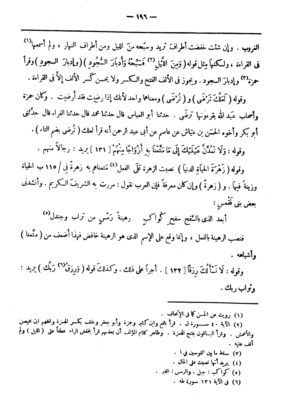 وقوله (زَهْرَةَ الْحَياةِ الدُّنْيا) نصبت الزهرة عَلَى الفعل «4» متعناهم بِهِ زهرةً فى/ 115 ب الحياة وزينة فيها. و (زهرة) وإن كَانَ معرفة فإن العرب تَقُولُ: مررتُ بِهِ الشريف الكريم. وأنشدني بعض بني فَقْعس:
