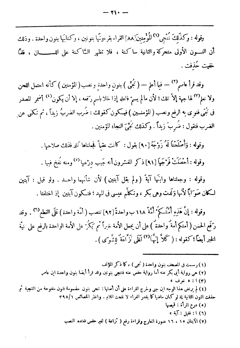 (1) رسمت فى المصحف بنون واحدة (نجى) ، كما ذكر المؤلف