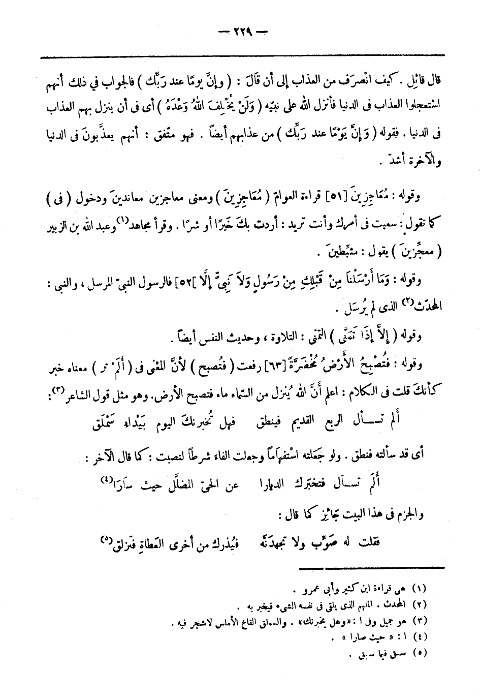 وقوله: مُعاجِزِينَ [51] قراءة العوامّ (معاجزين) ومعنى معاجزين معاندين ودخول (فِي) كما تَقُولُ: سعيت فِي أمرك وأنت تريد: أردت بك خَيْرًا أو شرًا. وقرأ مجاهد «1» وعبد الله بن الزبير (مُعجِّزِينَ) يقول: مثبِّطينَ.