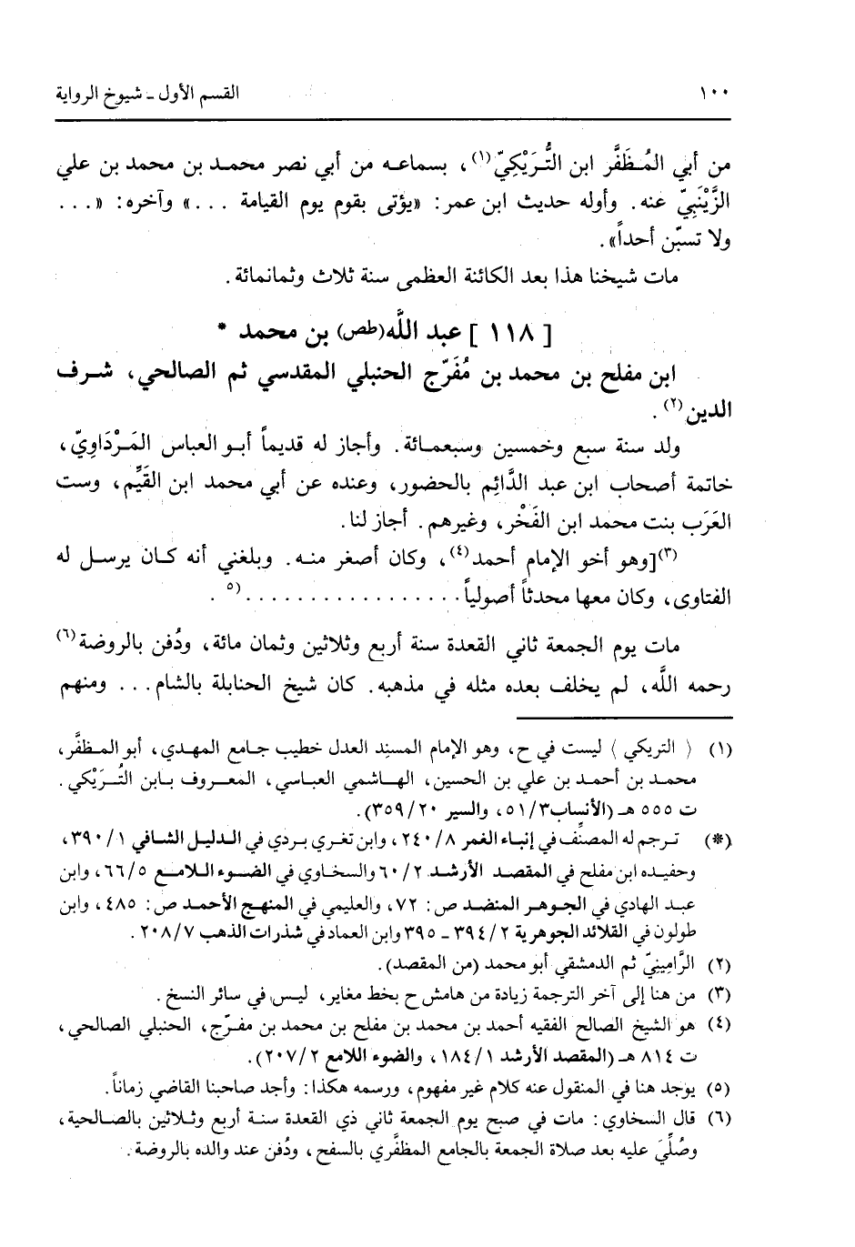 [118] عبد الله (طص) بن محمدابن مفلح بن محمد بن مُفرج الحنبلي المقدسي ثم الصالحي شرف الدين.