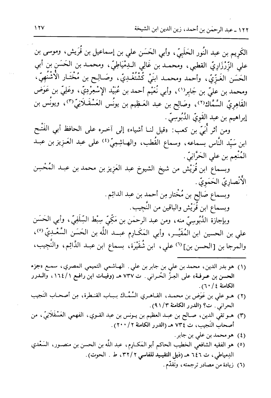 الكريم بن عبد النور الحلبي وأبي الحسن علي بن إسماععيل بن قُريش وموسى بن على الزرزاري القطبي ومحمد بن غالي الدمياطي ومحمد بن الحسن بن أبي الحسن الغزي وأحمد ومحمد ابني كُشتغدي وصالح بن مختار الأشنهي ومحمد بن علي بن جابر وأبي نُعيم أحمد بن عُبيد الإسعردي وعلي بن عوض القاهري السماك وصالح بن عبد العظيم بن يونس العسقلاني ويونس بن إبراهيم بن عبد القوي الدبوسي. ومن أثر أبي بن كعب: "قيل لنا أشياء" إلى آخره على الحافظ أبي الفتح ابن سيد الناس بسماعه وسماع القُطب والهاشمي على عبد العزبز بن عبد المنعم بن علي الحراني. وبسماع ابن قُريش من شيخ الشيوخ عبد العزيز بن محمد بن عبد المحسن الأنصاري الحموي. وبسماع صالح بن مُختار من أحمد بن عبد الدائم. وبسماع ابن قُريش والباقين من النجيب. وبإجازة الدبوسي منه ومن عبد الرحمن بن مكي سبط السلفي وأبي الحسن علي بن الحسين ابن المقير وأبي المكارم عبد الله بن الحسن السعدي والمرجا بن الحسن بن علي ابن شُقيرة بسماع ابن عبد الدائم والنجيب