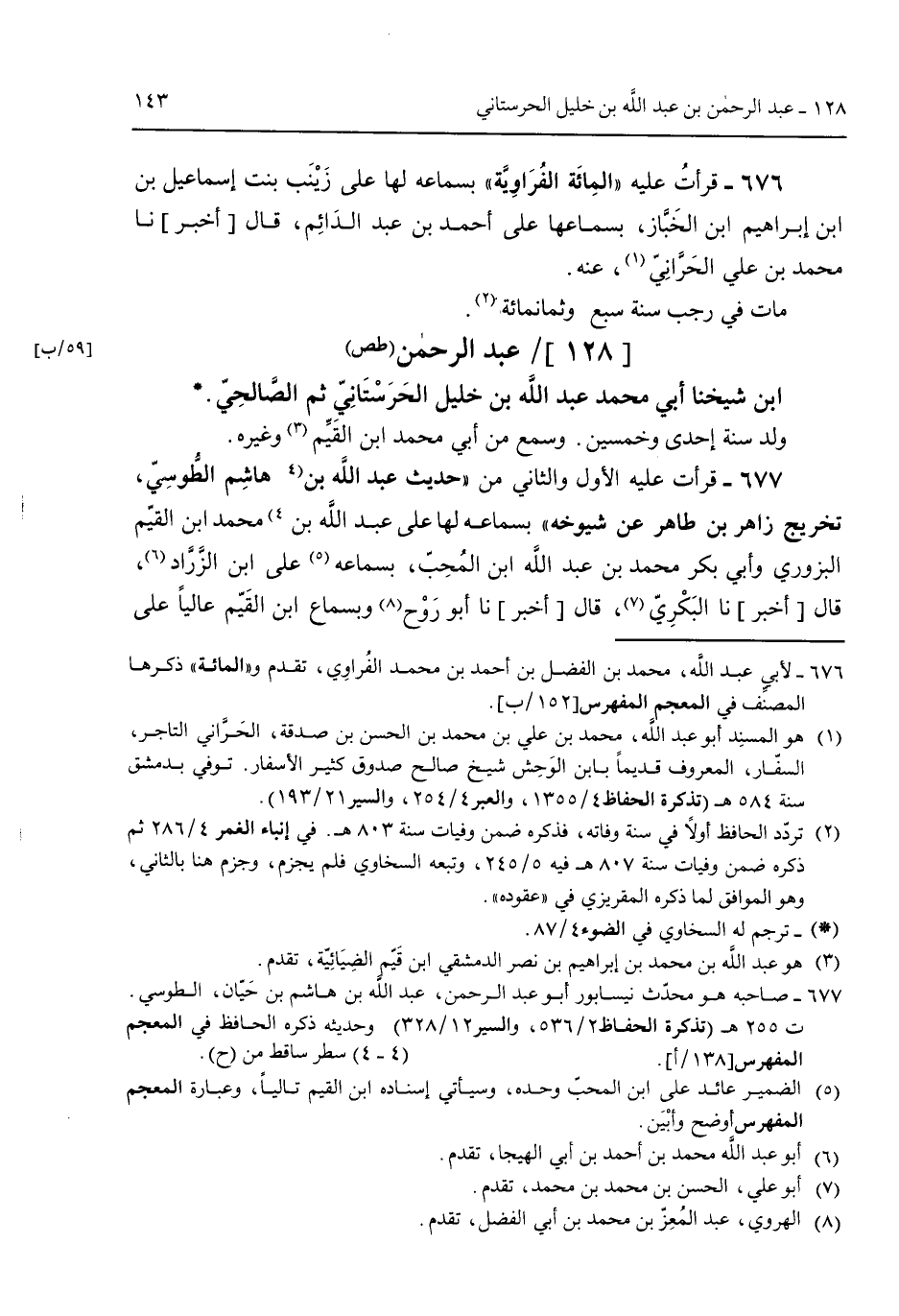 676 - قرأت عليه "المائة الفراوية" بسماعه لها على زينب بنت إسماعيل بن إبراهيم ابن الخباز بسماعها على أحمد بن عبد الدائم قال [أخبر] نا محمد بن علي الحراني عنه.