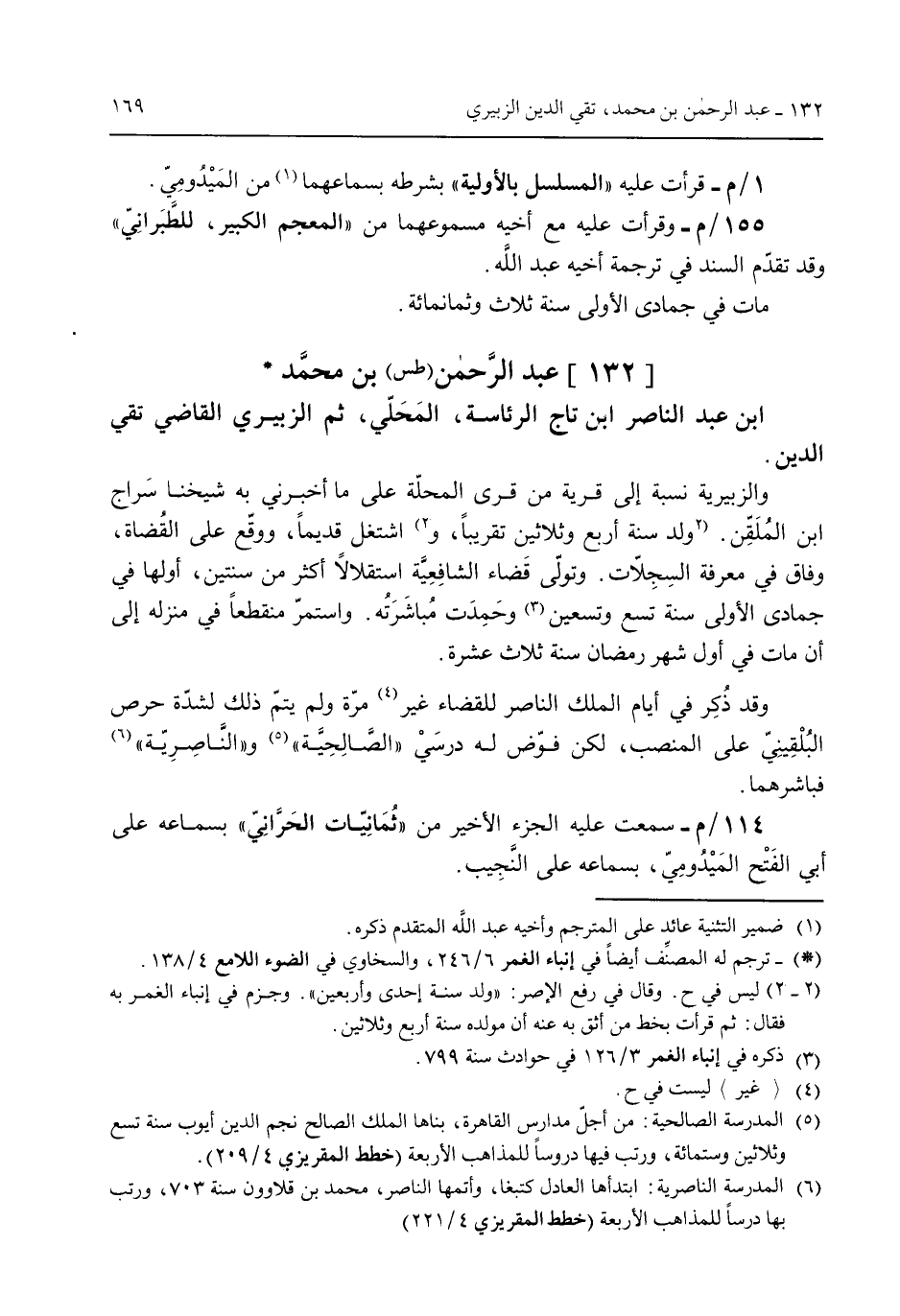 [132] عبد الرحمن (طس) بن محمد ابن عبد الناصر ابن تاج الرئاسة المحلي ثم الزبيري القاضي تقي الدين.