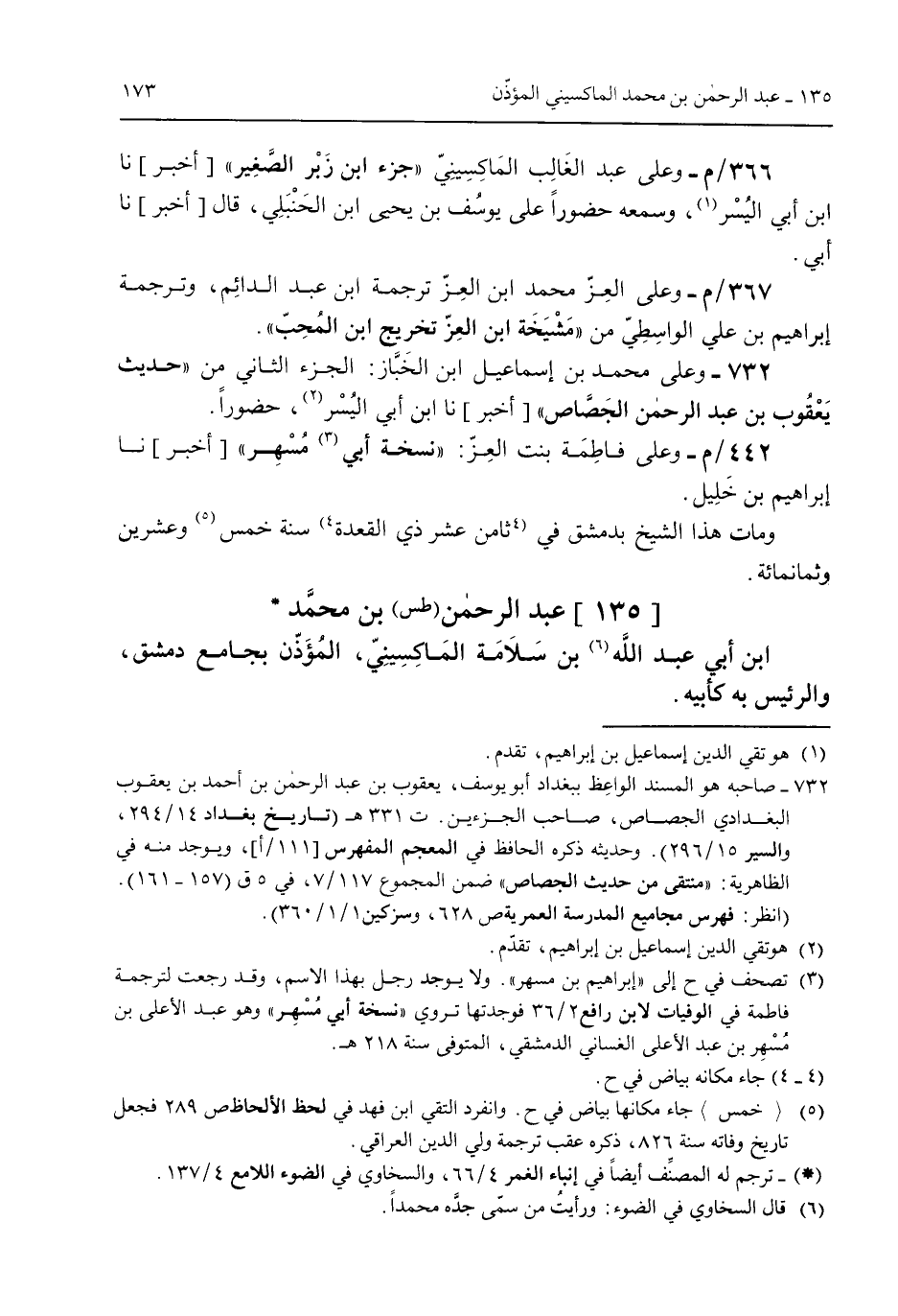 [135] عبد الرحمن (طس) بن محمد ابن أبي عبد الله بن سلامة الماكسيني المؤذن بجامع دمشق والرئيس به كأبيه.