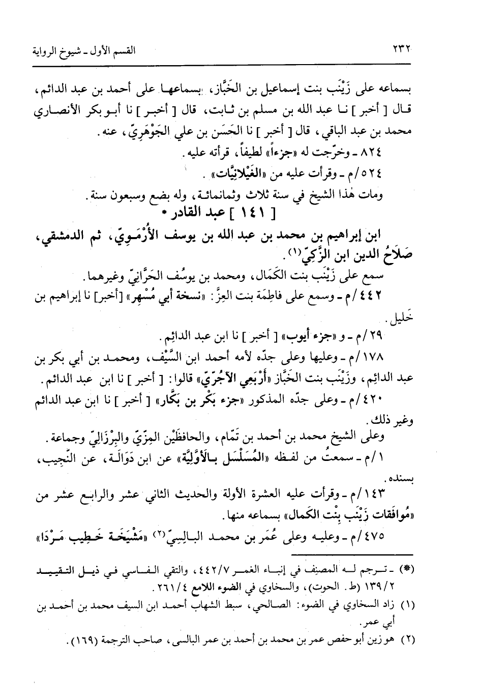[141] عبد القادر ابن إبراهيم بن محمد بن عبد الله بن يوسف الأرموي ثم الدمشقي صلاح الدين ابن الزكي سمع على زينب بنت الكمال ومحمد بن يوسف الحراني وغيرهما.