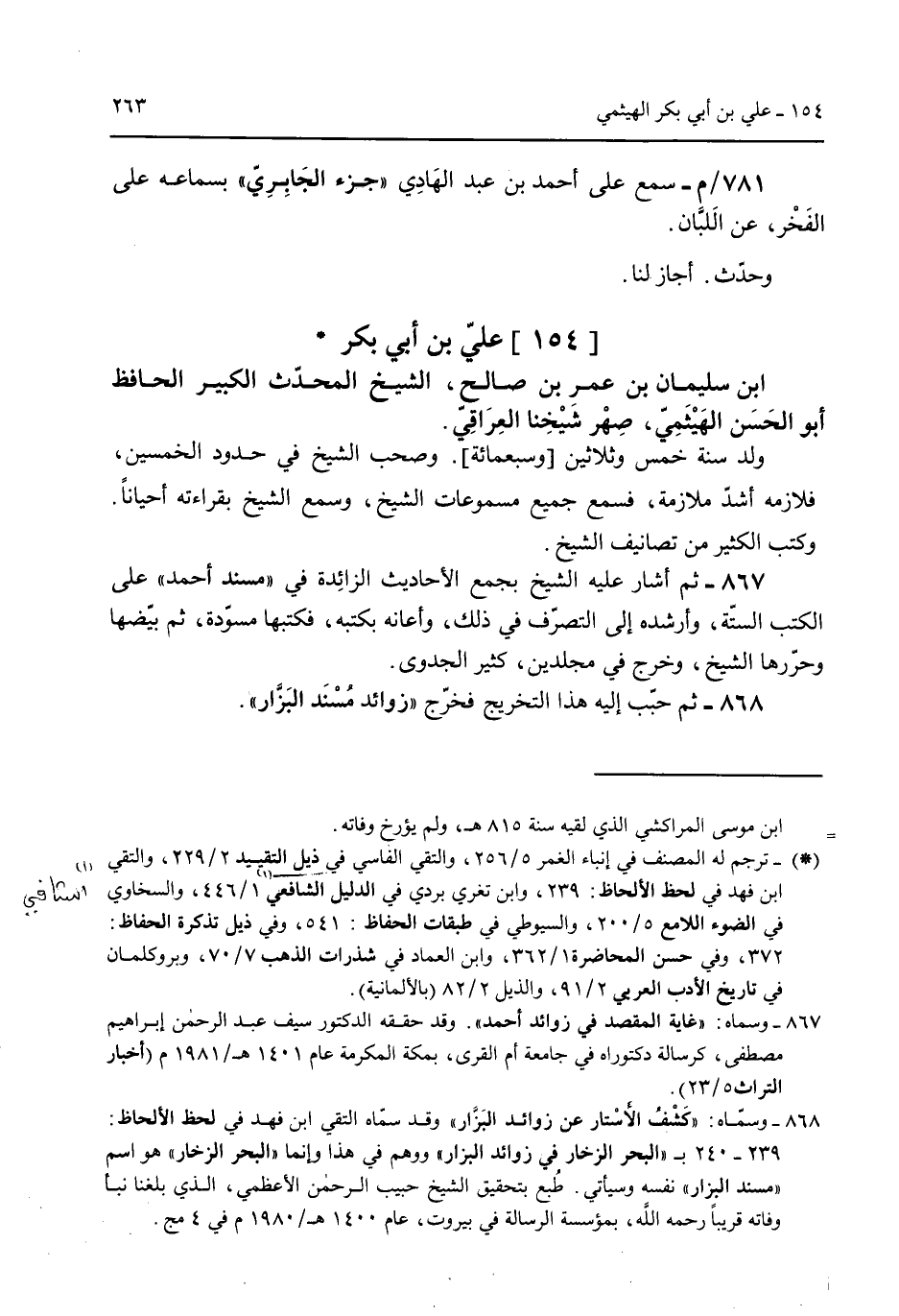 [154] علي بن أبي بكر ابن سليمان بن عمر بن صالح الشيخ المحدث الكبير الحافظ أبو الحسن الهيثمي صهر شيخنا العراقي.