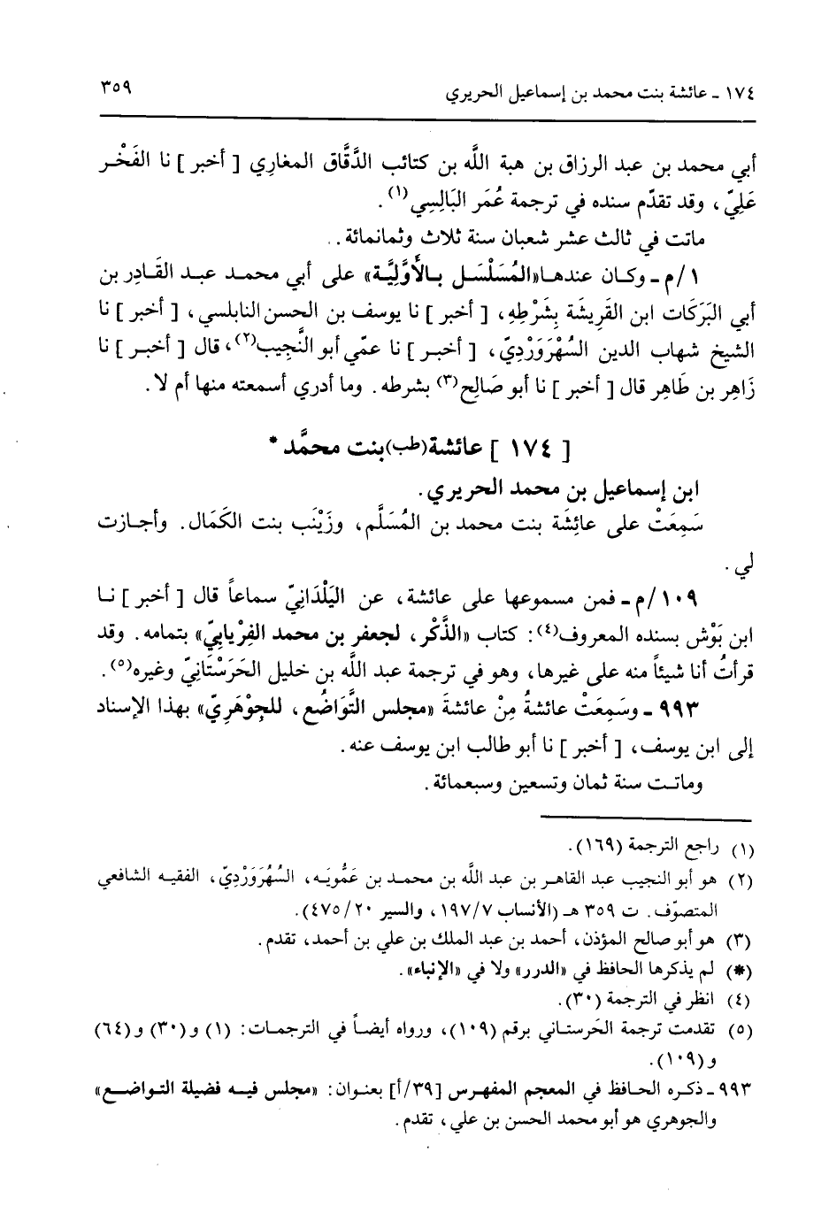 [174] عائشة (طب) بنت محمد ابن إسماعيل بن محمد الحريري.