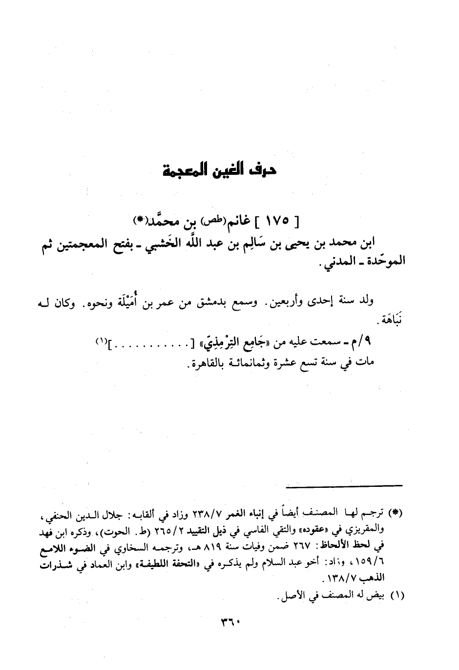 [175] غانم (طص) بن محمد ابن محمد بن يحيى بن سالم بن عبد الله الخشبي- بفتح المعجمتين ثم الموحدة- المدني.