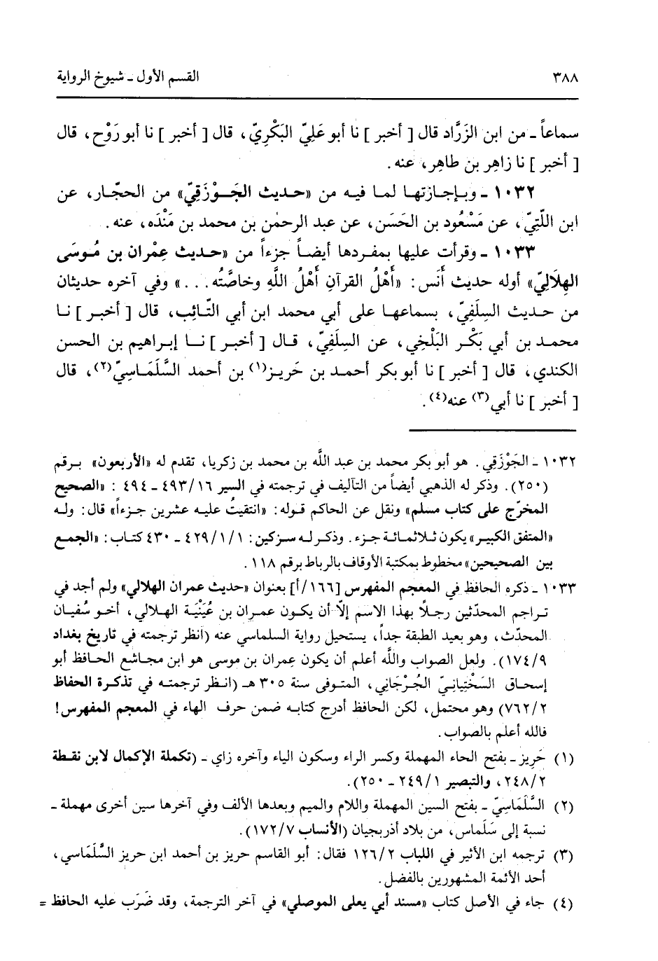 سماعاً- من ابن الزارد قال [أخبر] نا أبو علي البكري قال [أخبر] نا أبو روح قال [أخبر] نا زاهر بن طاهر عنه. 1032 - وبإجازتها لما فيه من "حديث الجوزقي" من الحجار عن ابن اللتي عن مسعود بن الحسن عن عبد الرحمن بن محمد بن منده عنه. 1033 - وقرأت عليها بمفردها أيضاً جزءاً من "حديث عمران بن موسى الهلالي" أوله حديث أنس: "أهل القرآن أهل الله وخاصته ... " وفي آخره حديثان من حديث السلفي بسماعها على أبي محمد ابن أبي التائب قال [أخبر] نا محمد بن أبي بكر البلخي عن السلفي قال [أخبر] نا إبراهيم بن الحسن الكندي قال [أخبر] نا أبو بكر أحمد بن حريز بن أحمد السلماسي قال [أخبر] نا أبي عنه.