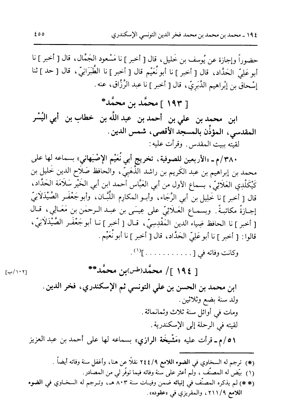 [193] محمد بن محمد ابن محمد بن علي بن أحمد بن عبد الله بن خطاب بن أبي اليسر المقدسي المؤذن بالمسجد الأقصى شمس الدين.