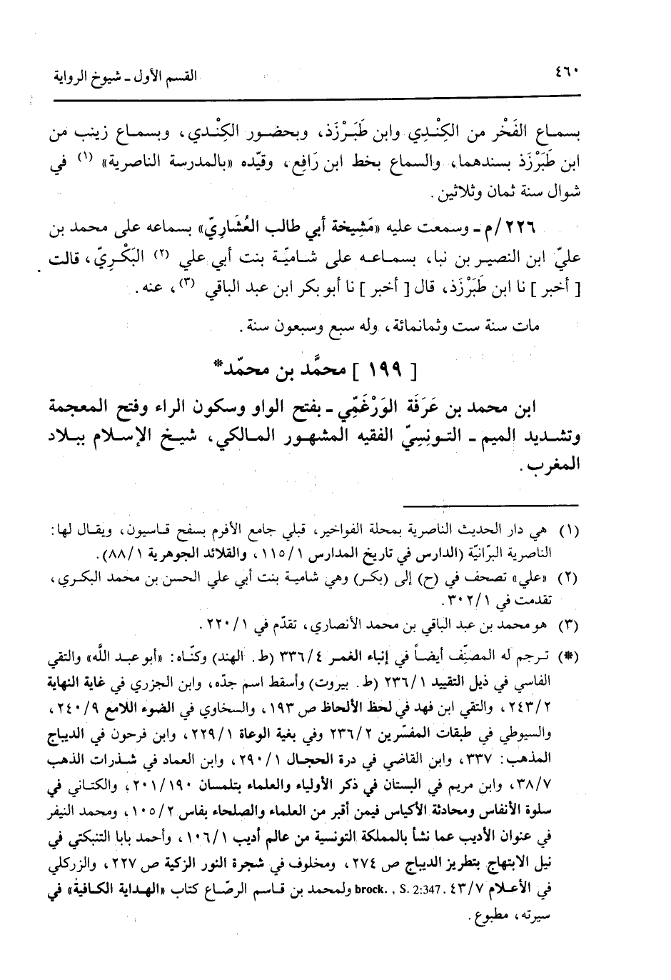 [199] محمد بن محمد ابن محمد بن عرفة الورغمي -بفتح الواو وسكون الراء وفتح المعجمة وتشديد الميم- التونسي الفقيه المشهور المالكي شيخ الإسلام ببلاد المغرب.