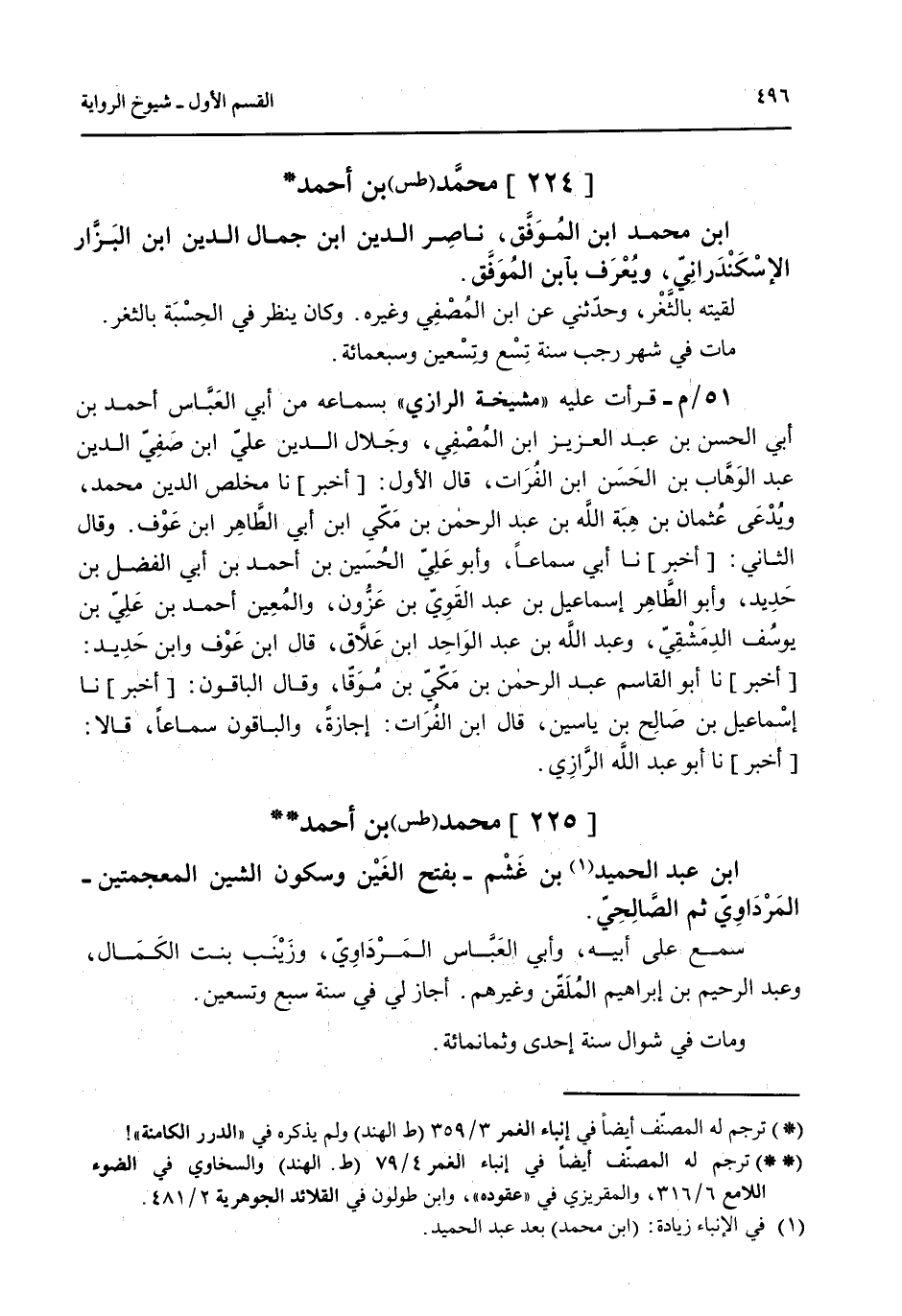 [224] محمد (طس) بن أحمد ابن محمد ابن الموفق ناصر الدين ابن جمال الدين ابن البزار الإسكندارني ويعرف بابن الموفق.