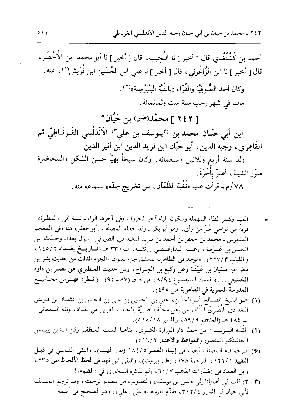 [242] محمد (طس) بن حيان ابن أبي حان محمد بن يوسف بن علي الأندلسي الغرناطي ثم القاهري وجيه الدين ابن فريد الدن ابن أثير الدين.