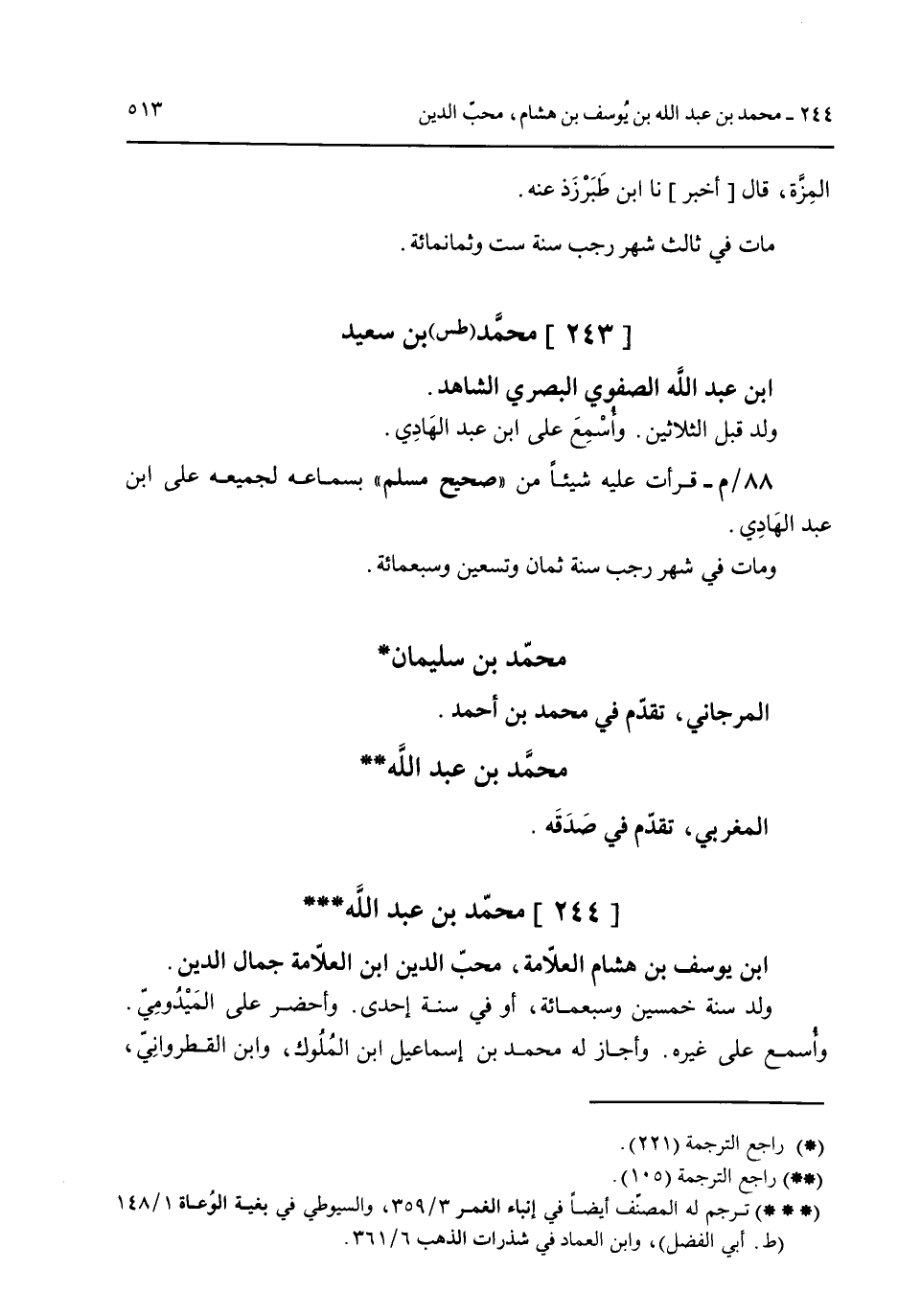 [244] محمد بن عبد الله ابن يوسف بن هشام العلامة محب الدين ابن العلامة جمال الدين.