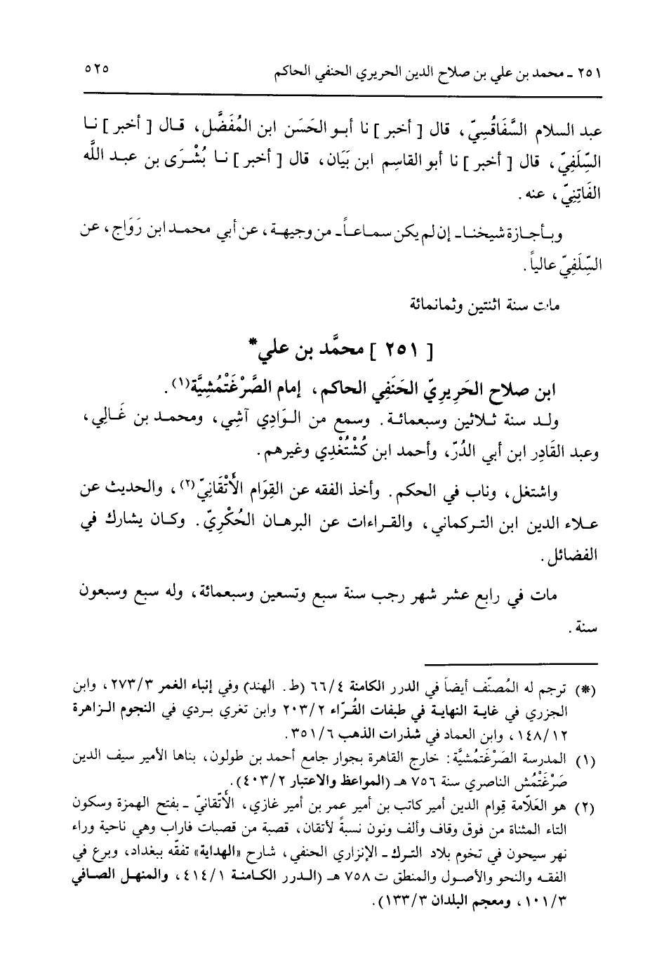 [251] محمد بن علي ابن صلاح الحريري الحنفي الحاكم إمام الصَّرْغَتْمُشية.