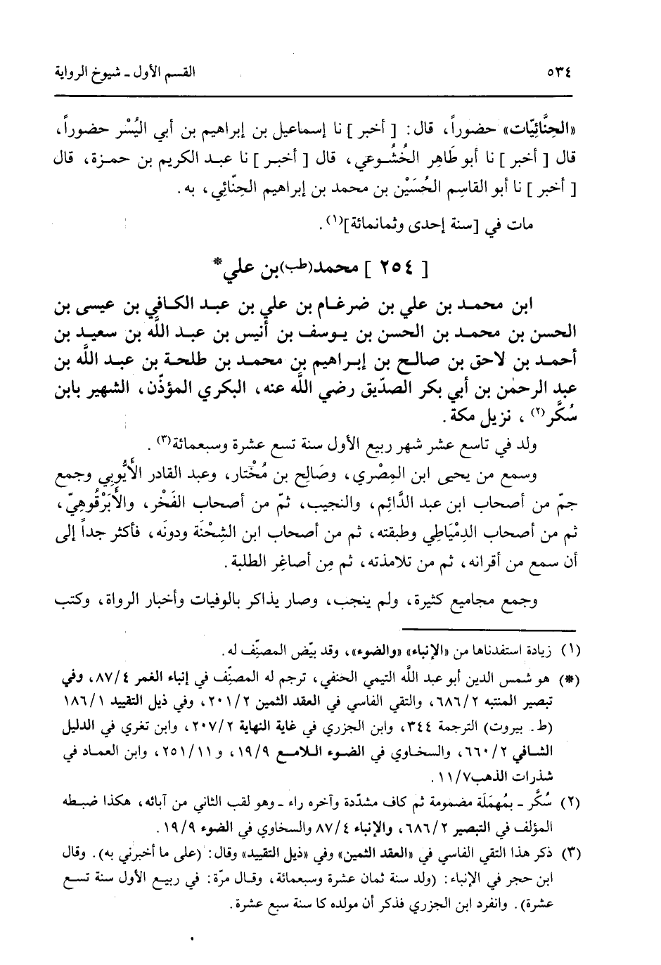 [254] محمد (طب) بن علي ابن محمد بن علي بن ضرغام بن علي بن عبد الكافي بن عيس بن الحسن بن محمد بن الحسن بن وسف بن أنيس بن عبد الله بن سعيد بن أحمد بن لاحق بن صالح بن إبراهيم بن محمد بن طلحة بن عبد الله بن عبد الرحمن بن أبي بكر الصديق رضي الله عنه البكري المؤذن الشهرين بابن سكر نزيل مكة.